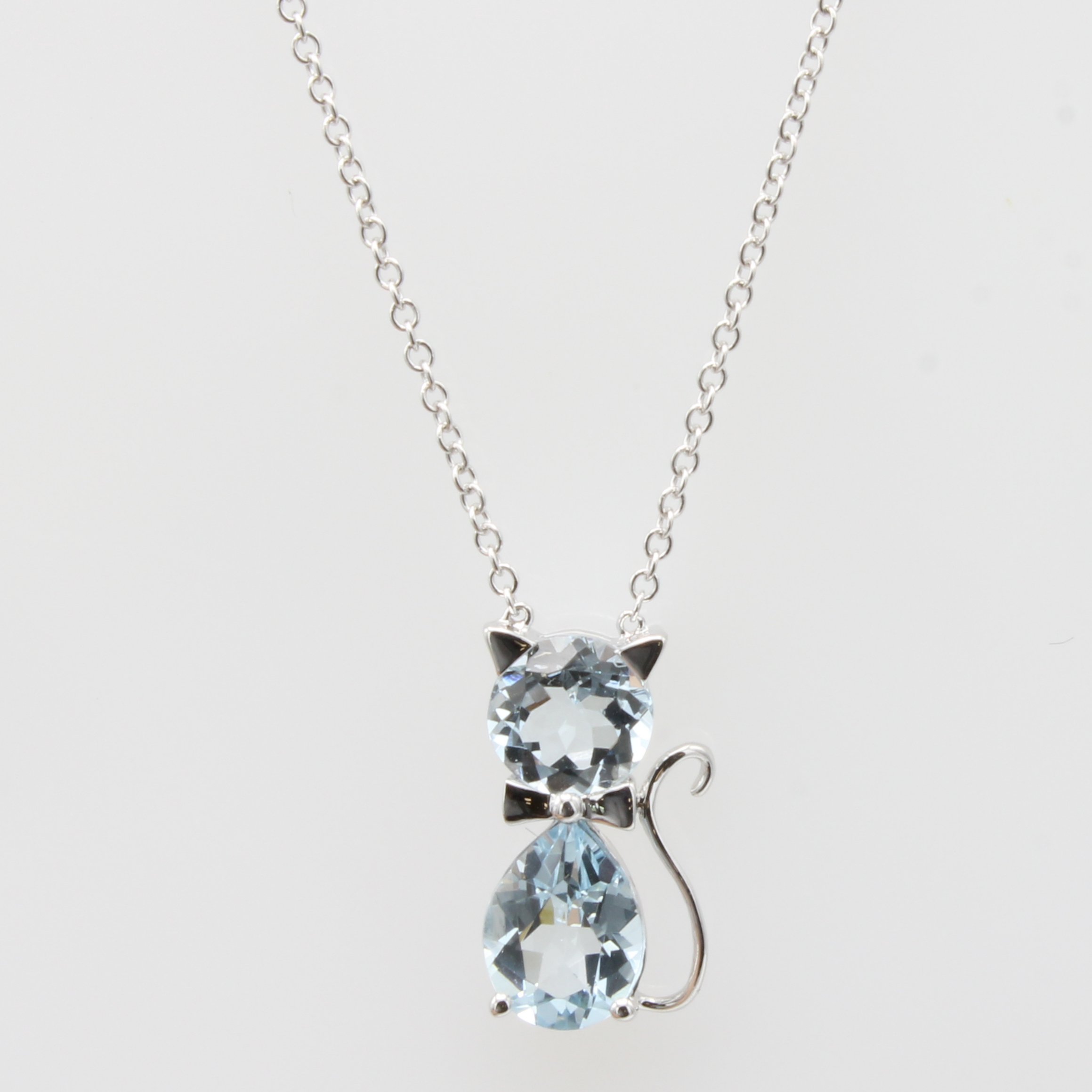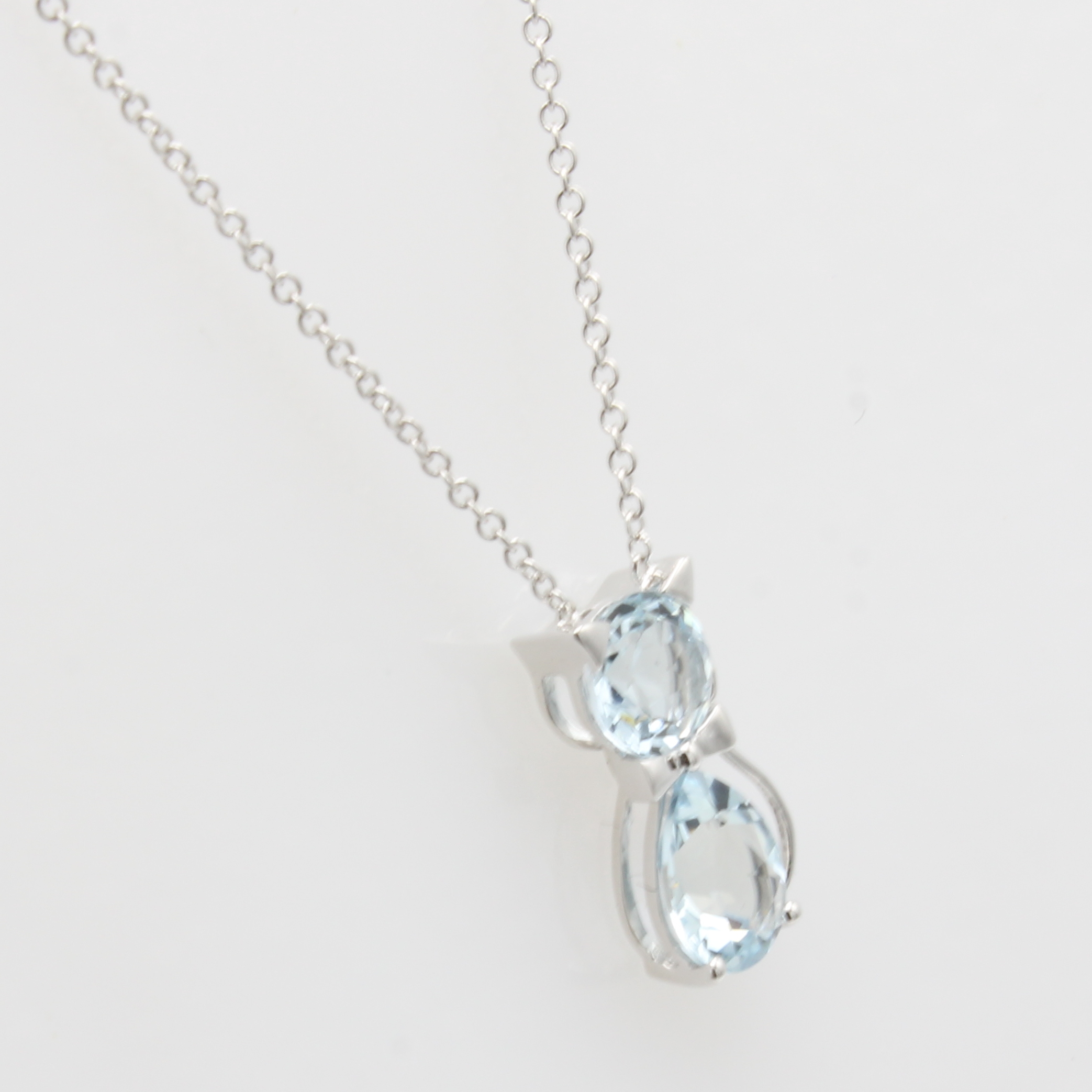 Collier "Katze" mit Amethyst, WG 585/000, 2 Aquamarine zus. ca. 1.71 ct, in L. ca. 42 u. 45 cm tragbar Schätzpreis: 1090, - EUR
