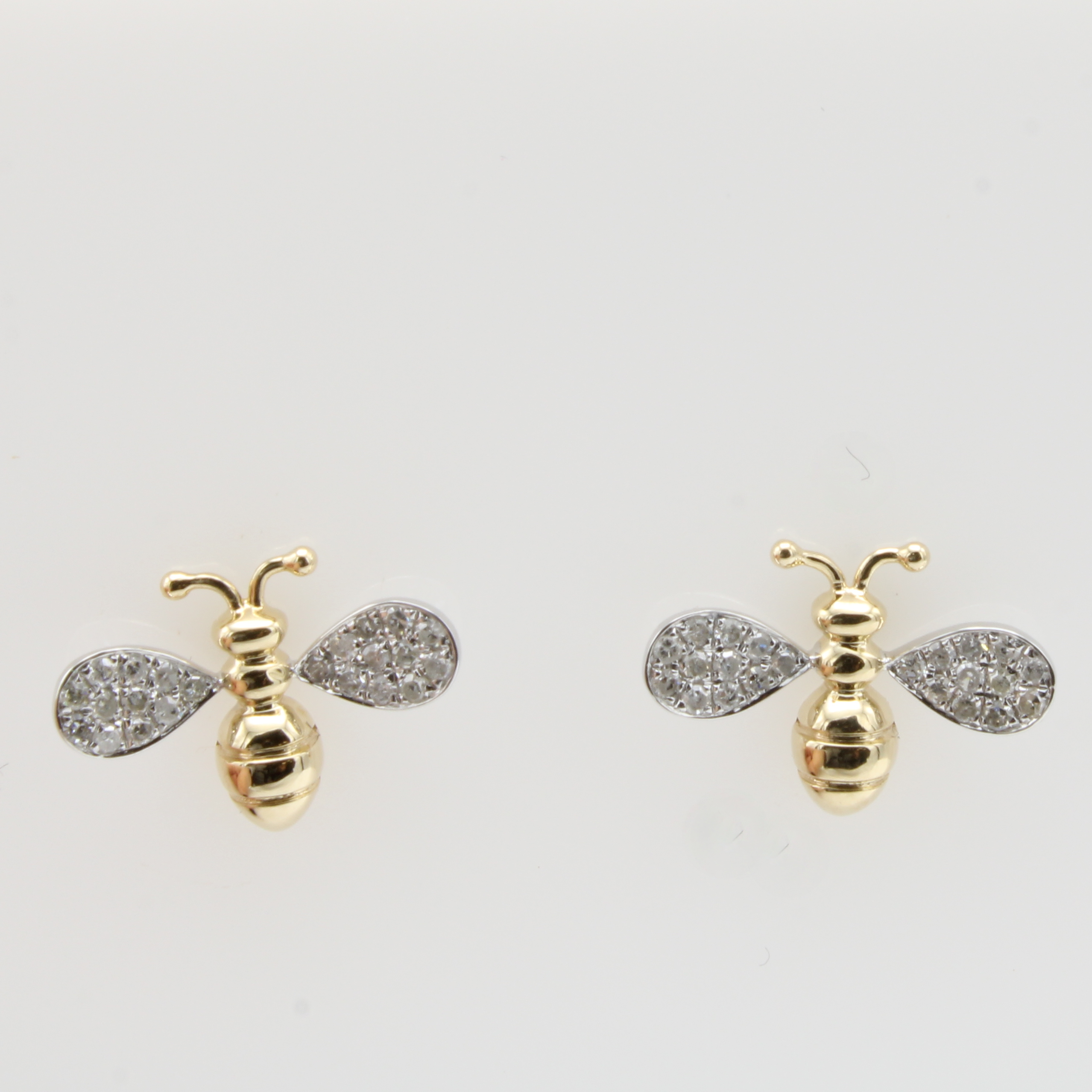 Paar Ohrstecker "Biene", GG 585/000, 44 Brill. zus. ca. 0.19 ct Weiß/si-p Schätzpreis: 1035, - EUR