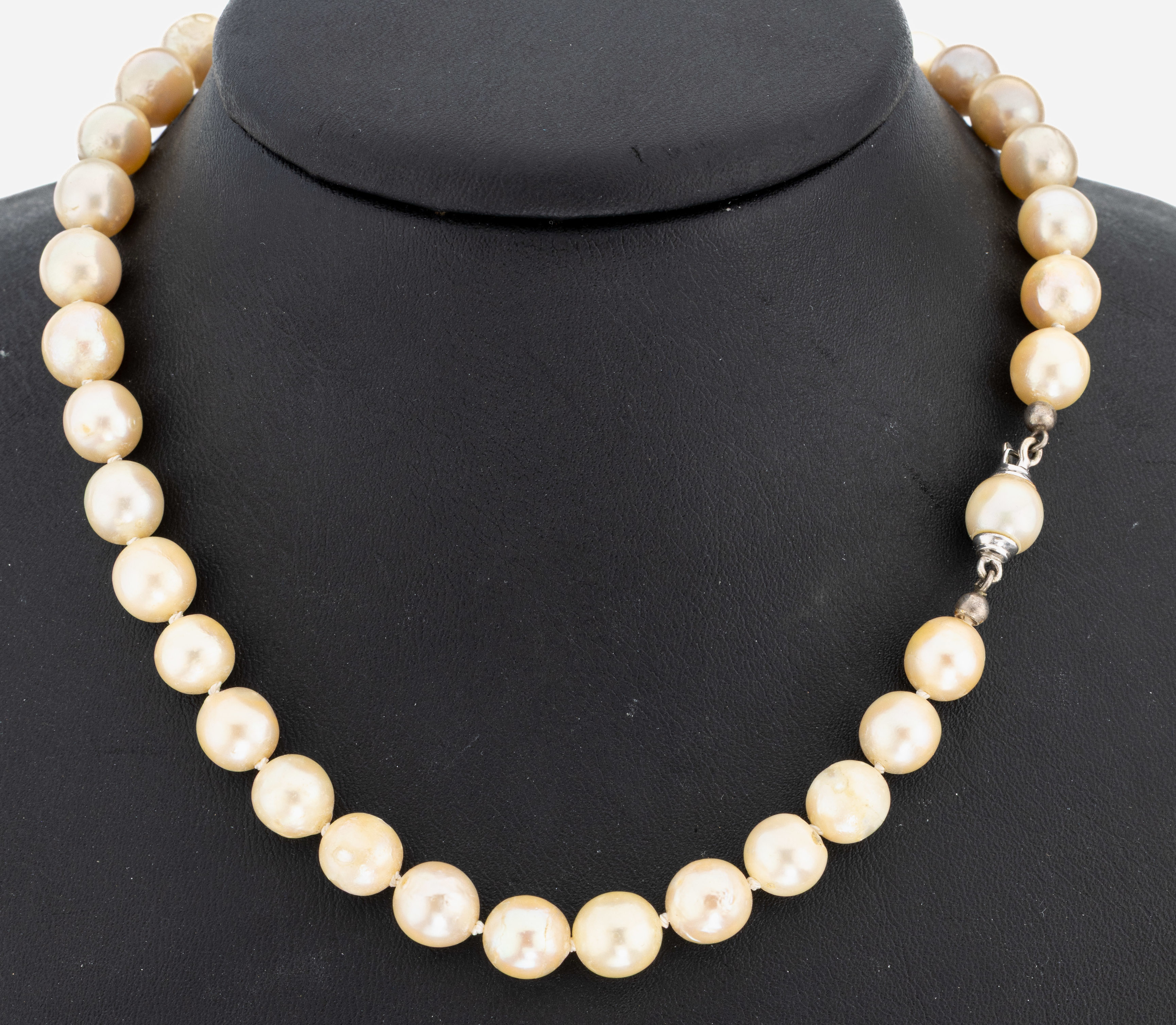 Perl-Collier mit 18 kt Gold Schließe, WG 750/000 gepr., Zuchtperlen, D. ca. 8-8.5