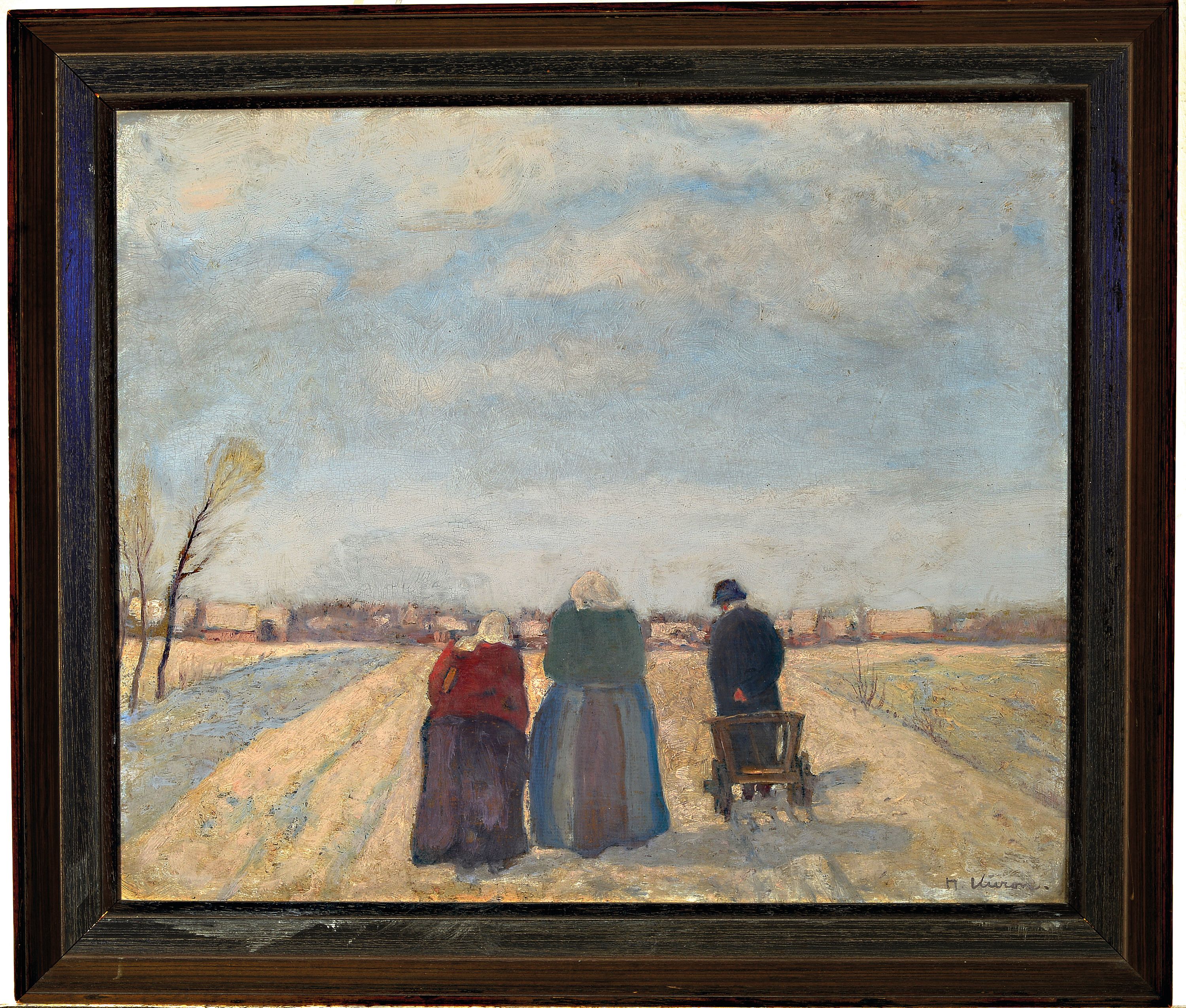 Herbert Kuron, 1888 Breslau-1951 Berlin, Kirchgang im Winter, rückseitig so betitelt,
