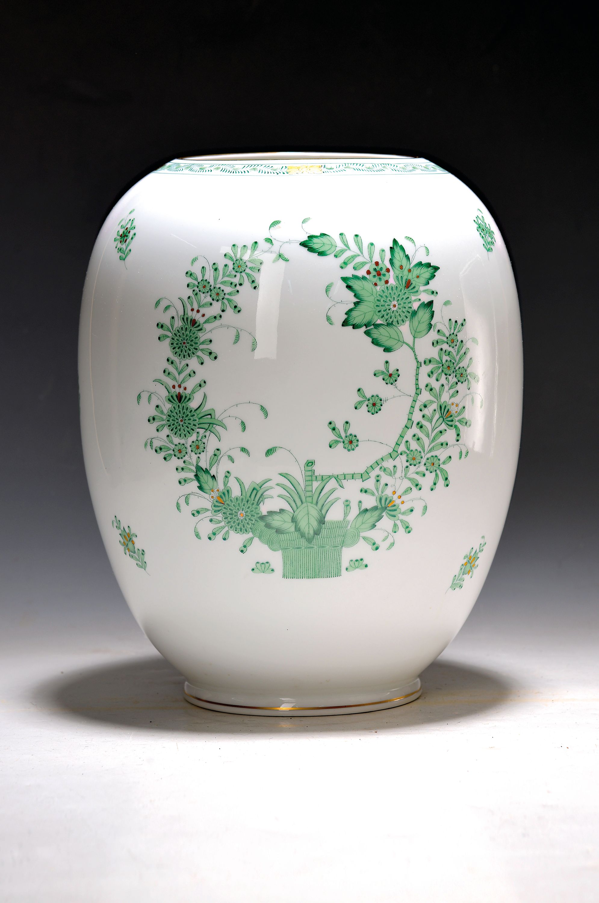 Große Vase, Herend, Indian Basket in, Grün, Porzellan, beidseitig bemalt, H. ca.