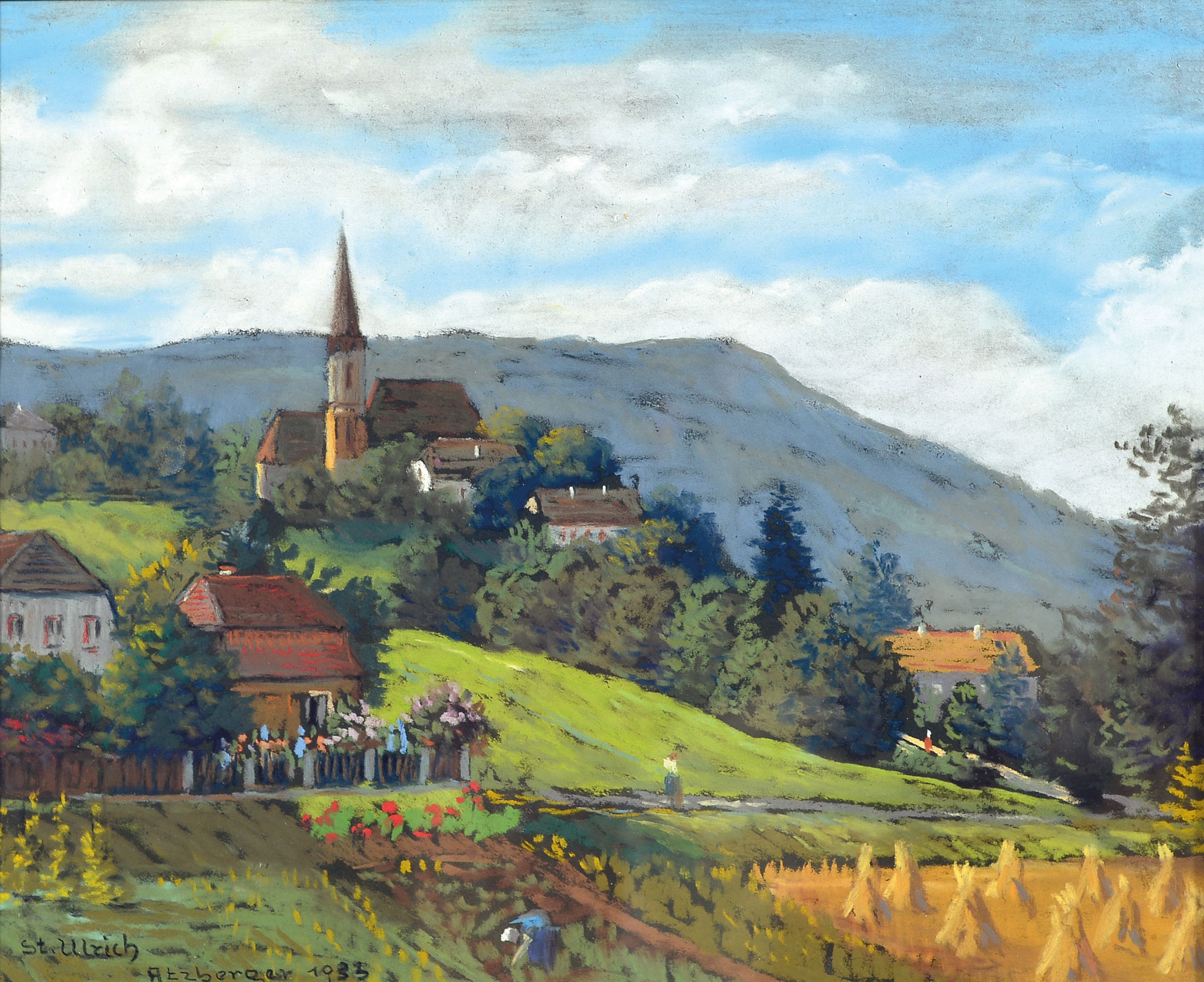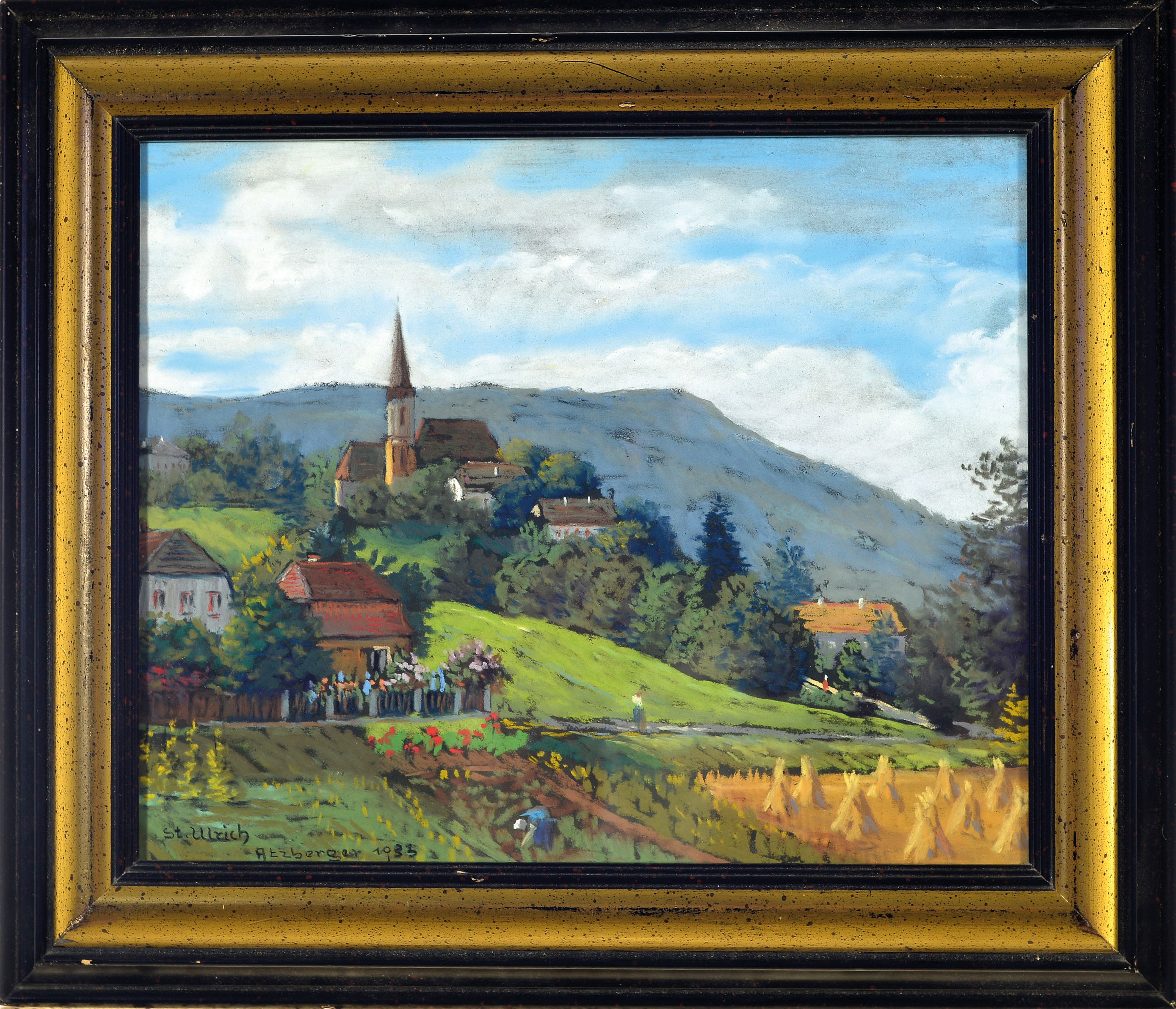 Hans Atzberger, Maler der 1. Hälfte des 20. Jh., Blick auf St. Ulrich in der Steiermark,