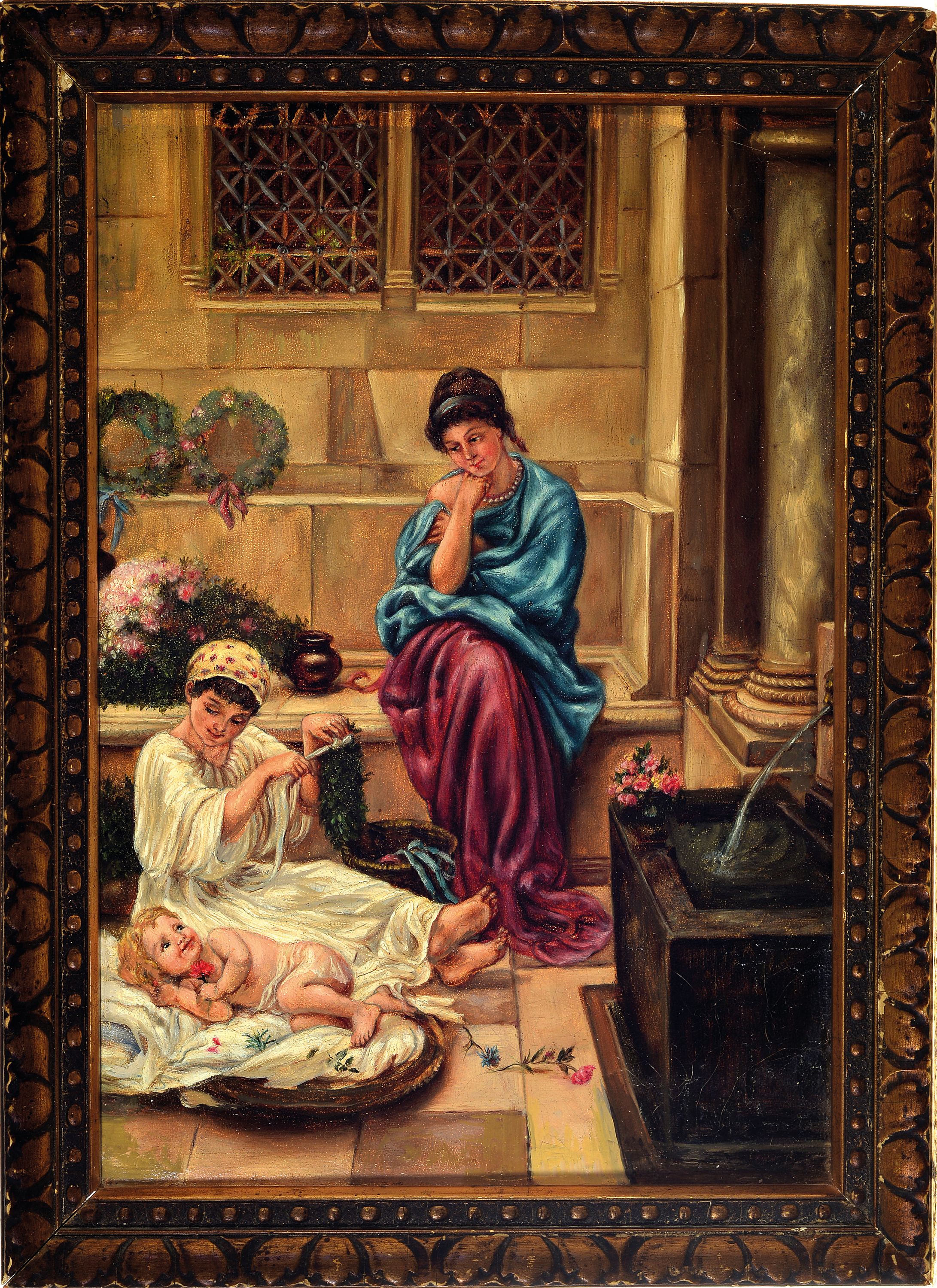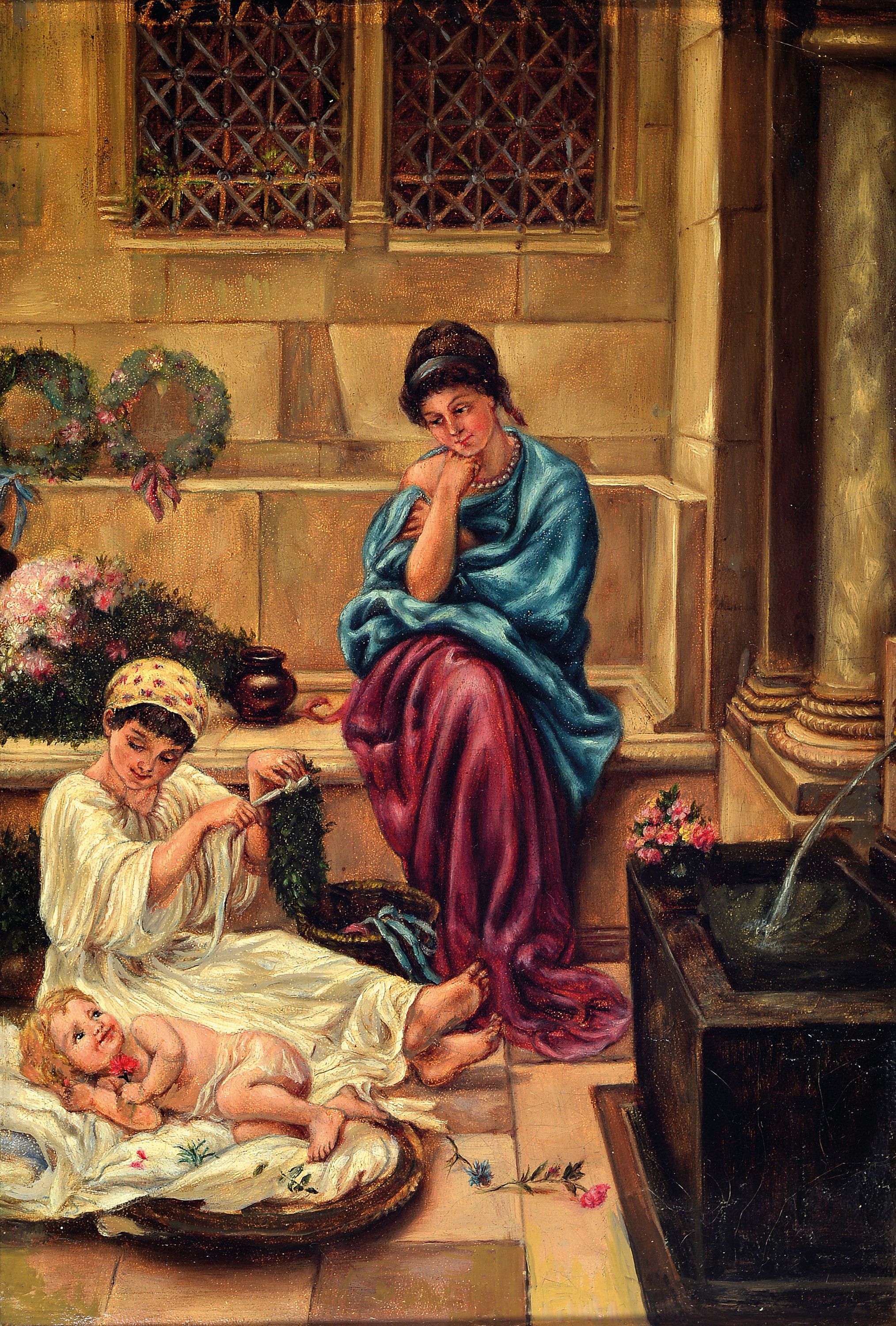 Unbekannter Künstler des 19. Jh., Römische Familie auf der Terrasse, Öl/Lwd, unsign.,