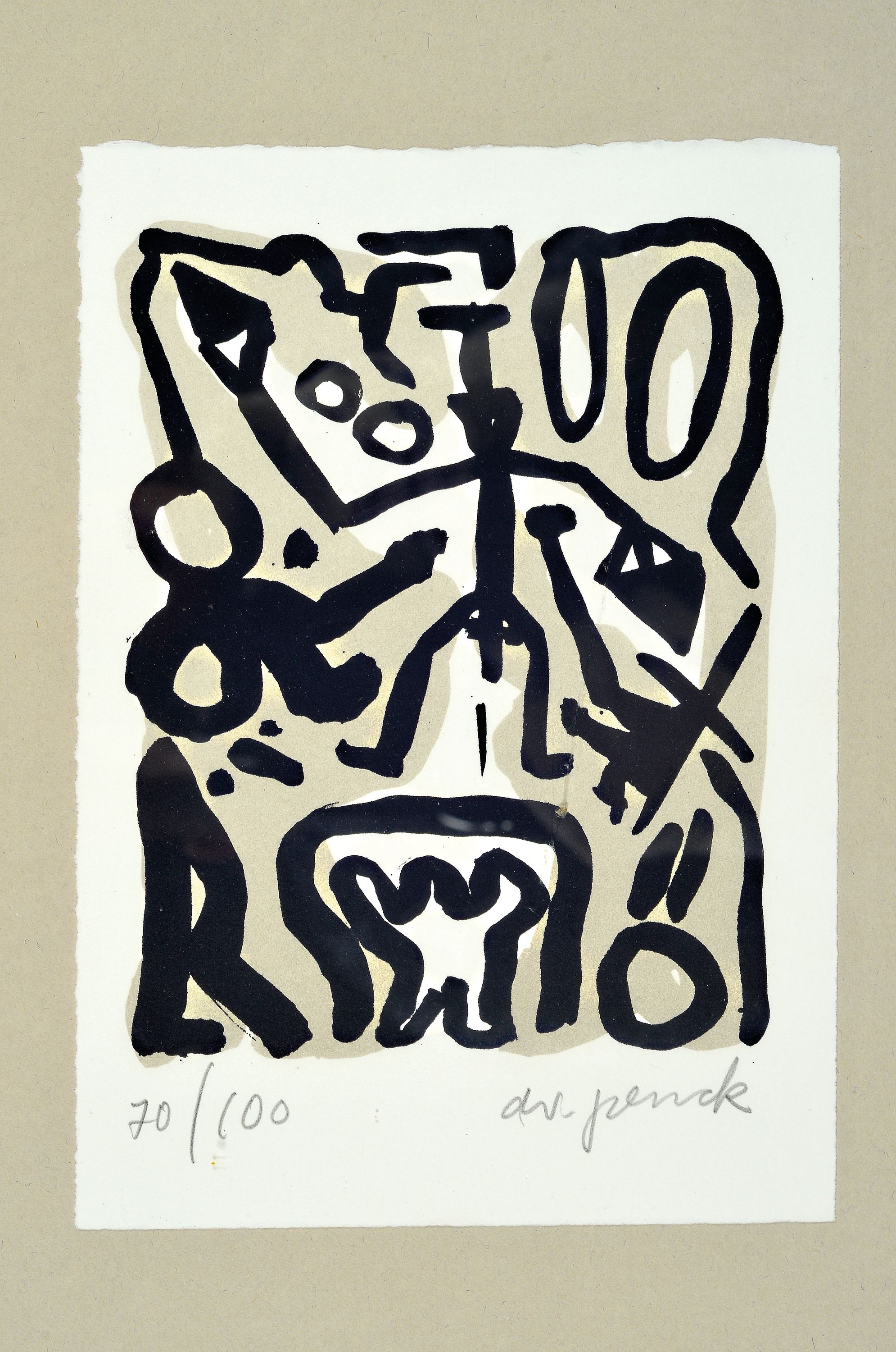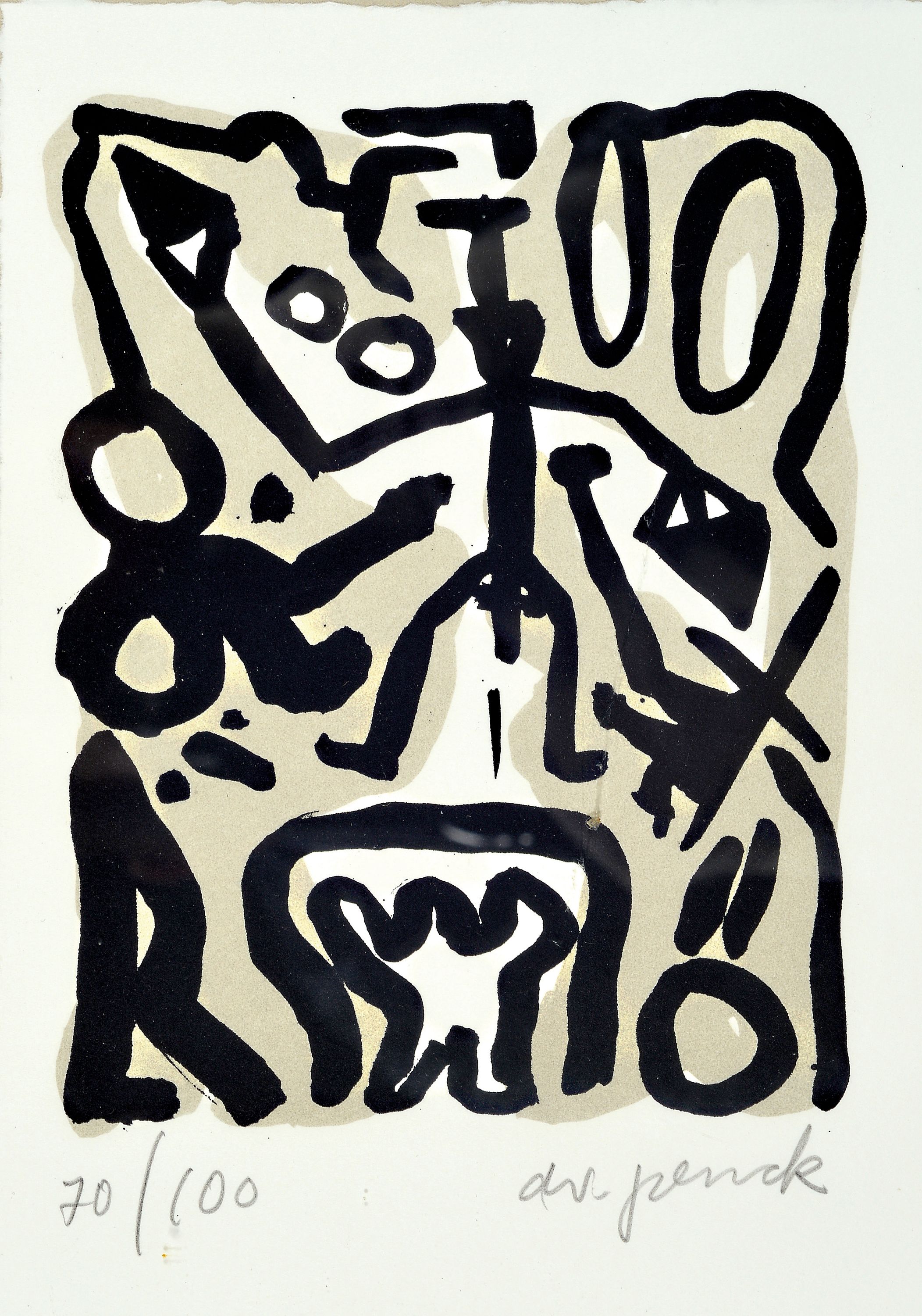 A.R. Penck, 1939-2017, color lithograph, handsigned. and number. 70/100, approx.
