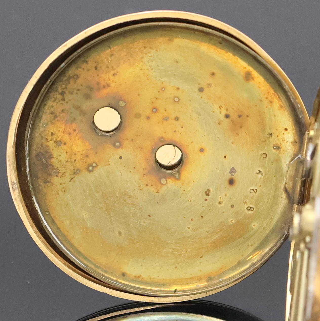 Offene Herrentaschenuhr in GG 750/000 mit Schlüsselaufzug, Schweiz um 1860, guill.,