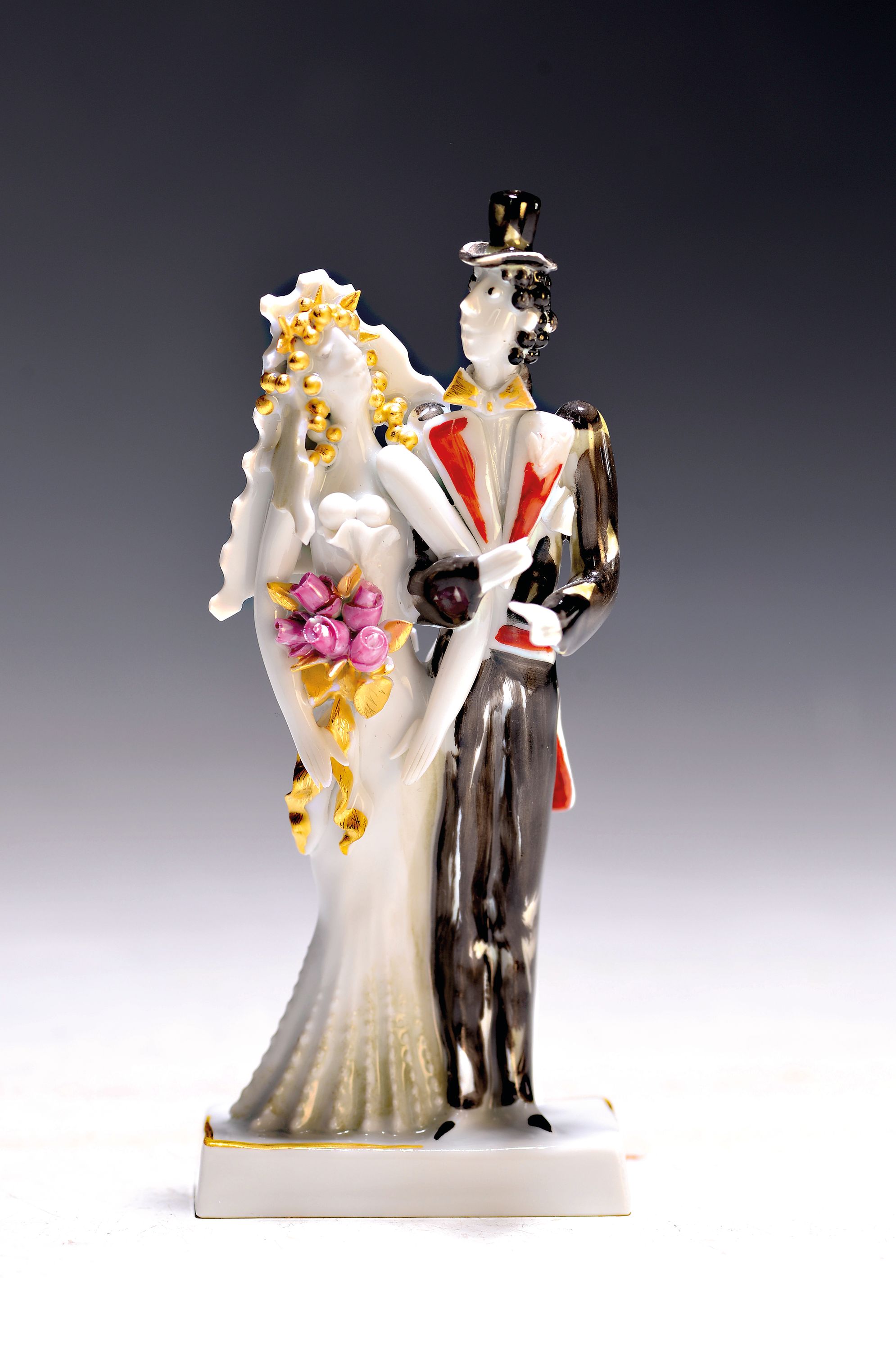Porzellanfigur, Meissen, Entwurf Peter Strang Brautpaar, bunt bemalt, Formnr. 81856-1,