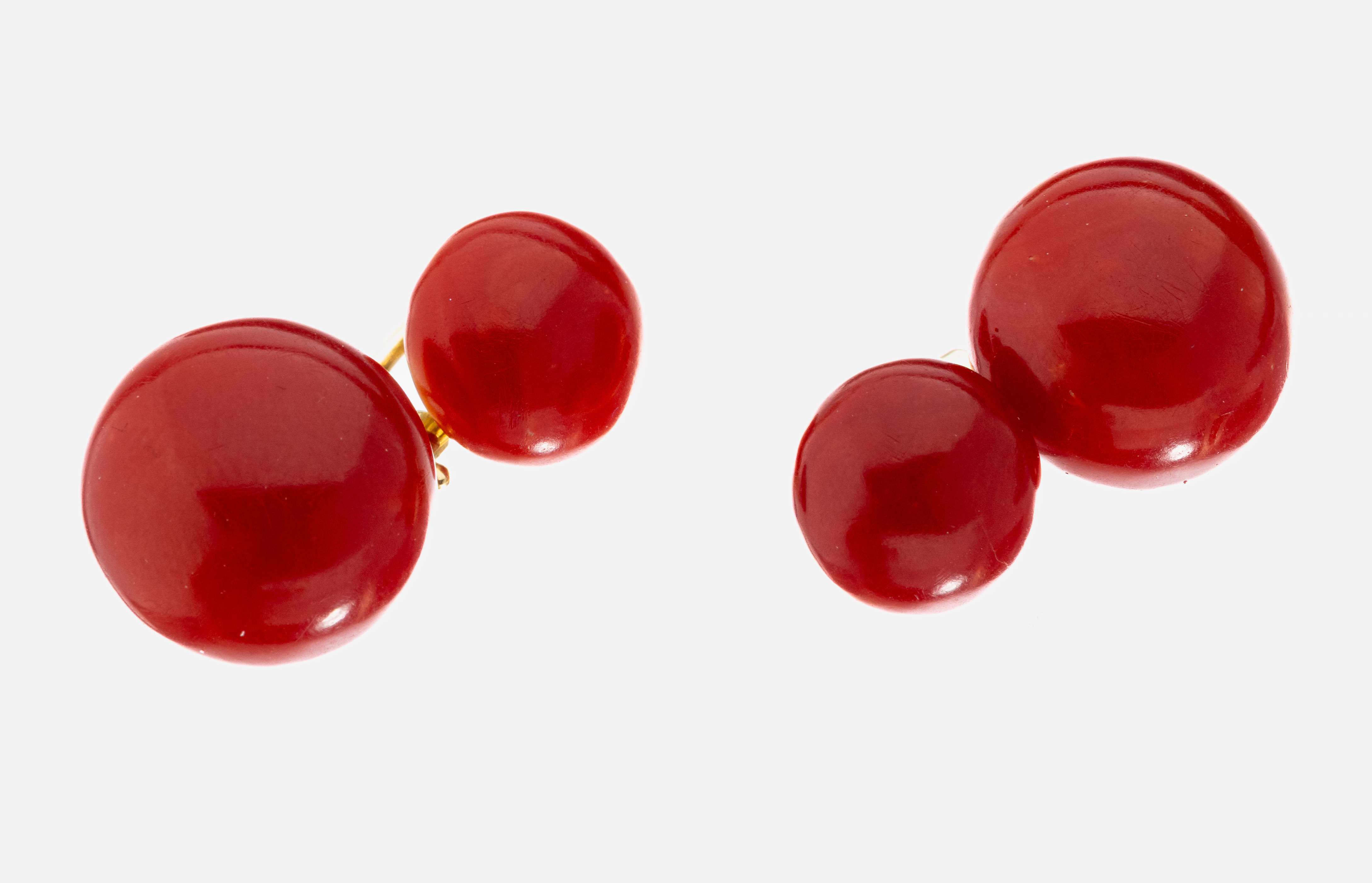 Paar 14 kt Gold Korallen-Manschettenknöpfe, um1910-20, GG 585/000, Korallen-Boutons
