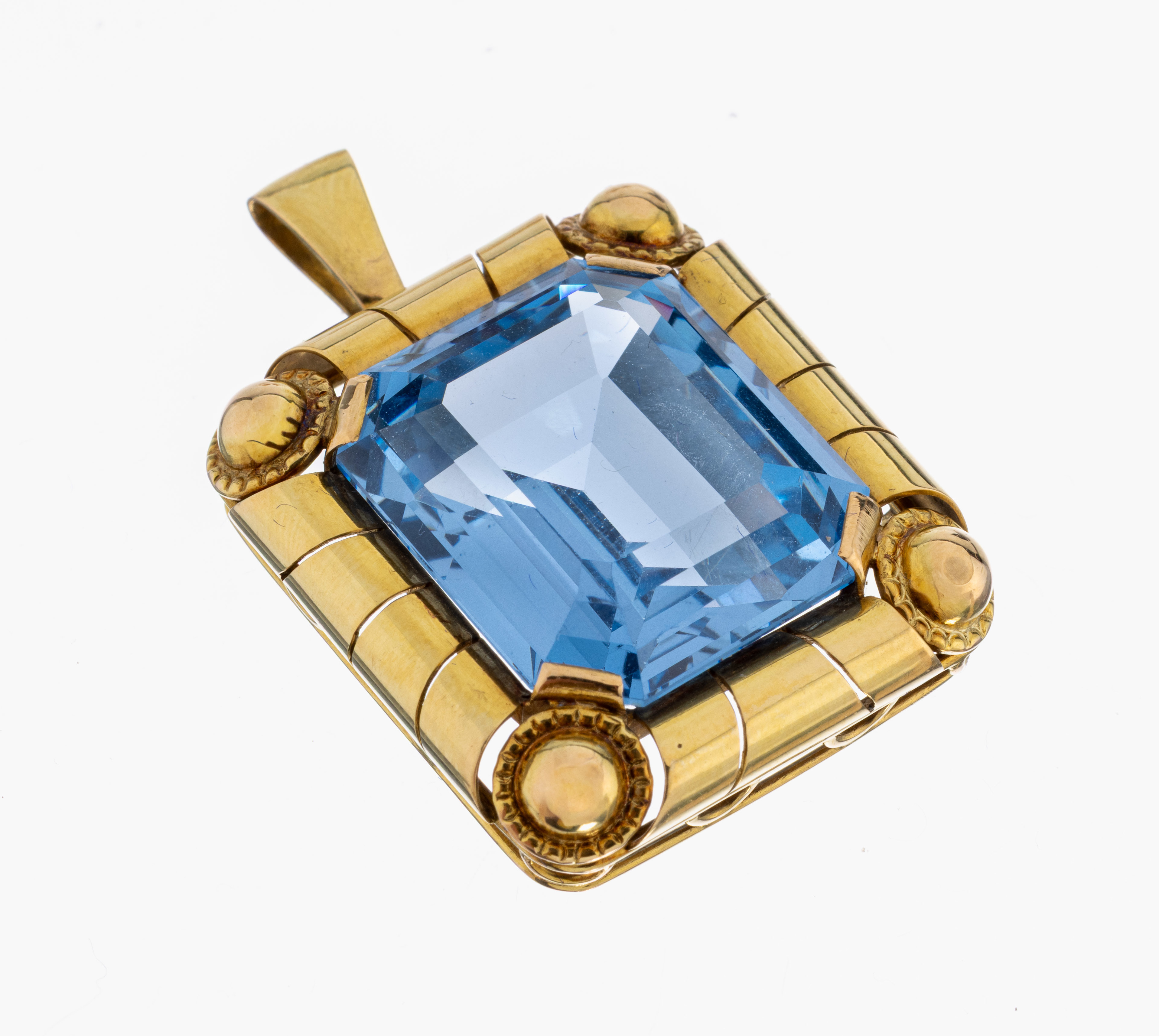 14 kt Gold Farbstein-Anhänger, 1950er Jahre, GG 585/000, geometrisches Design, gr.