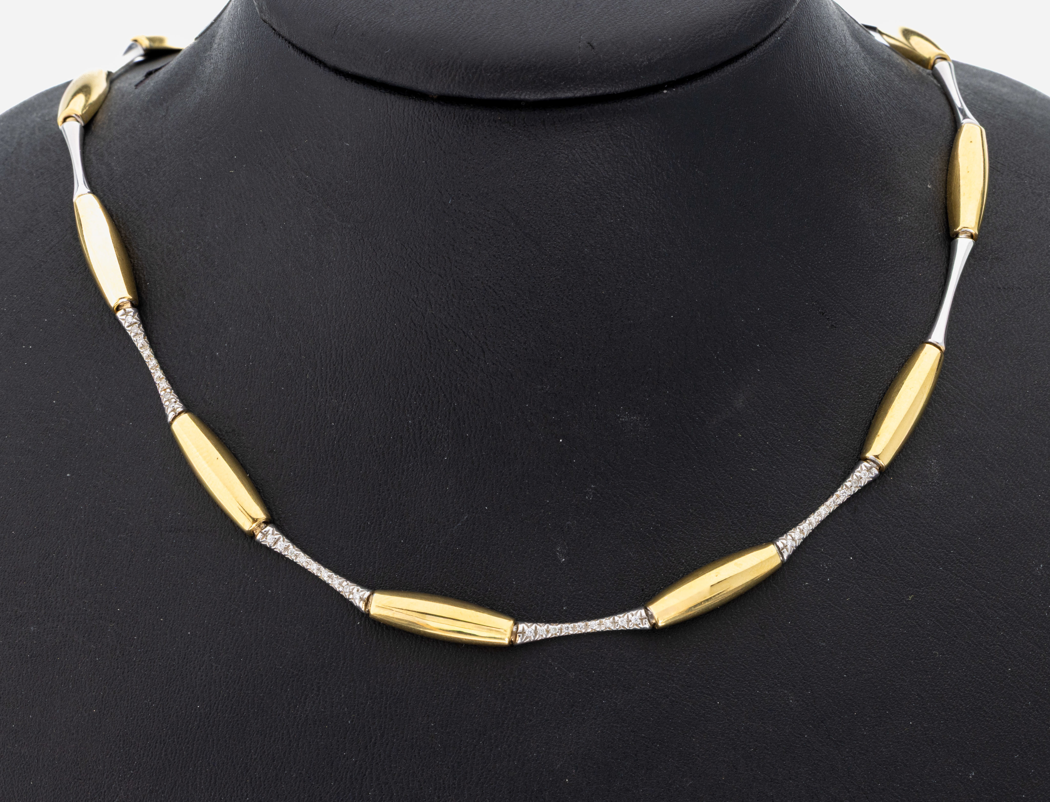 18 kt Gold Brillant-Collier, GG/WG 750/000,außergewöhnliche Gestaltung, GG und