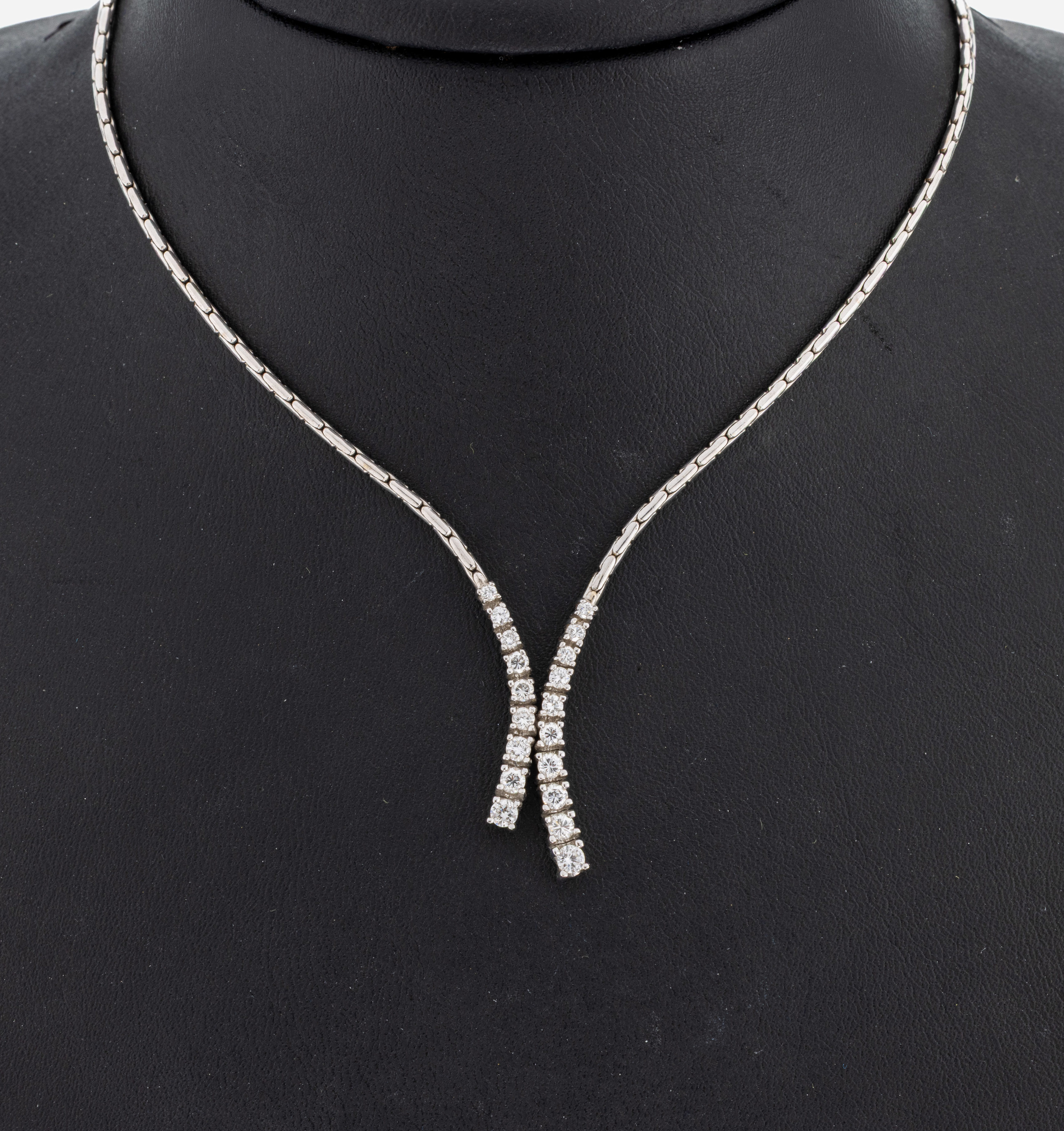 18 kt Gold Brillant-Collier, WG 750/000, Mittelteil mit 19 Brillanten zus. ca. 0.79