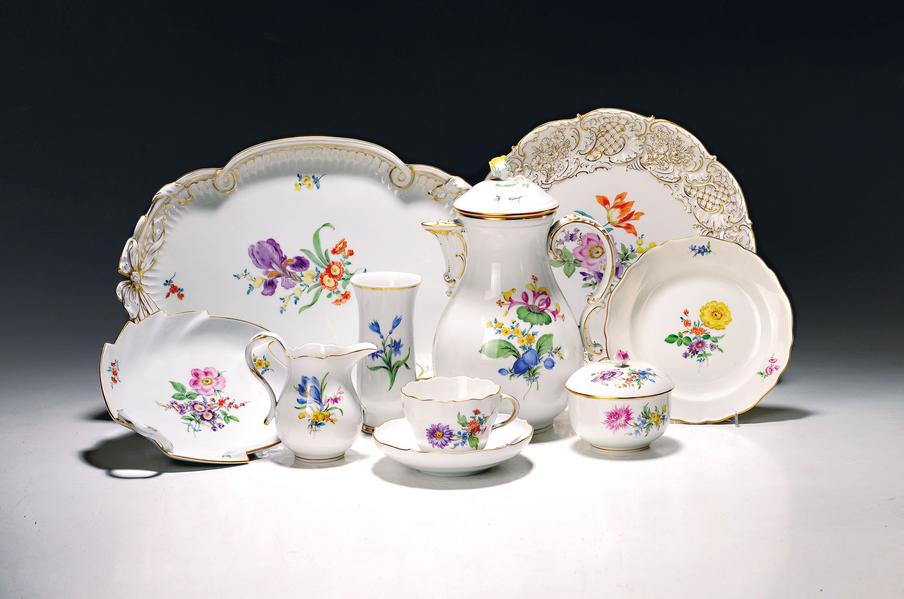Sahnegießer, Väschen Blattschale, runder Prunkteller, Kuchenplatte, Alterssp.