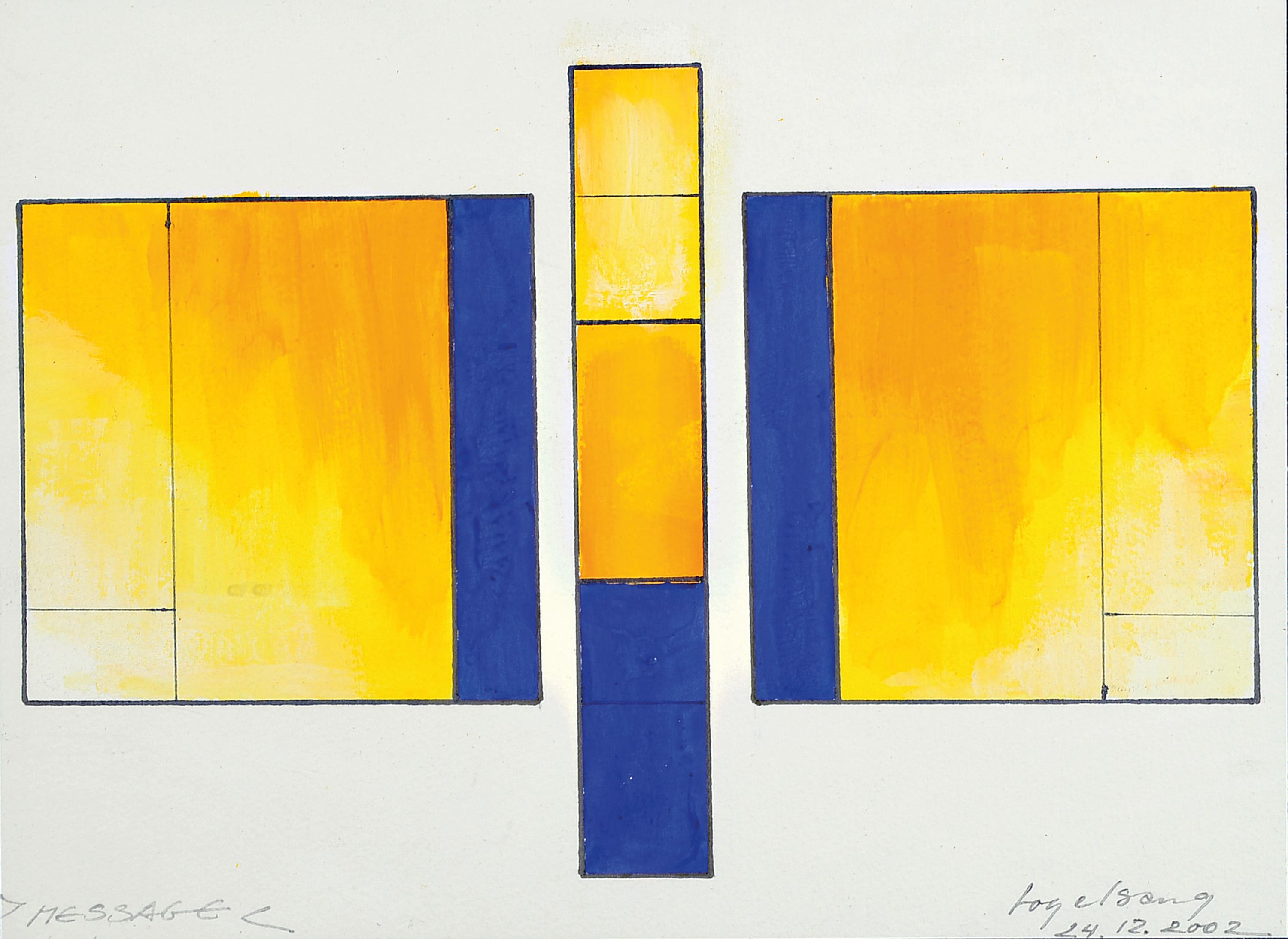 Karl Vogelsang, 1932 Essen-2006 Kronberg, "Message", datiert 24.12.2002, Gouache, unter PP gerahmt 43x51 cm