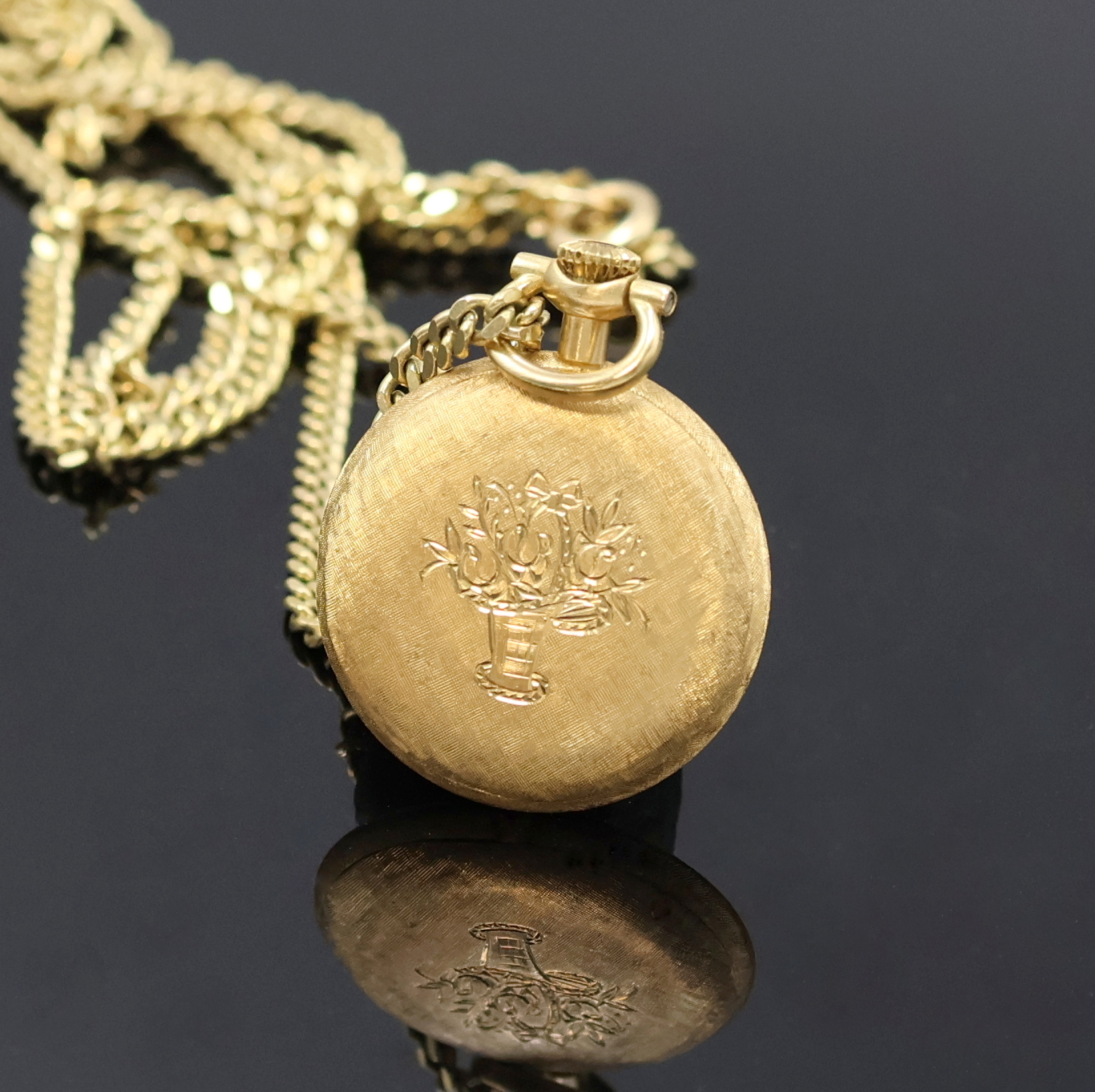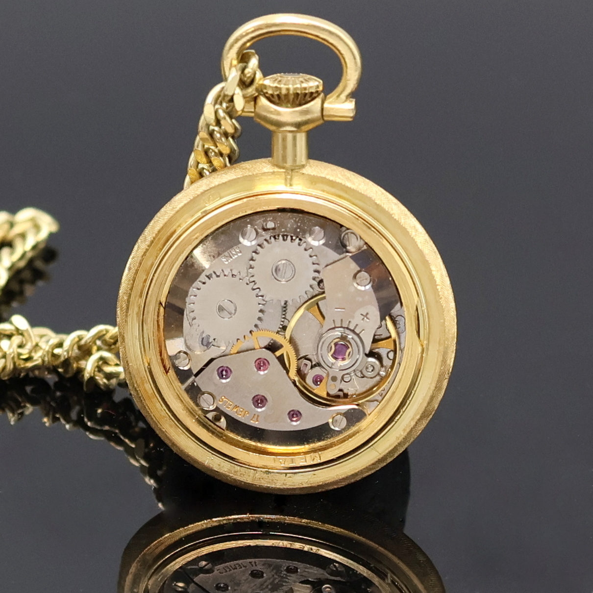 ULLMANN Geneve kleine, offene Damenanhängeuhr in GG 585/000 an Kette in GG 585/000,