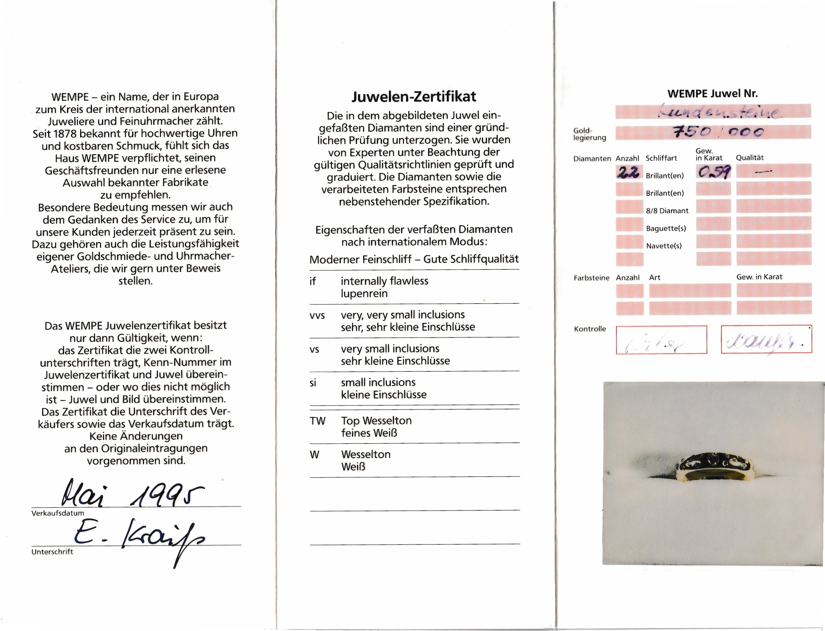 18 kt Gold WEMPE Brillant-Ring, GG 750/000,22 Brillanten zus. ca. 0.59 ct feines