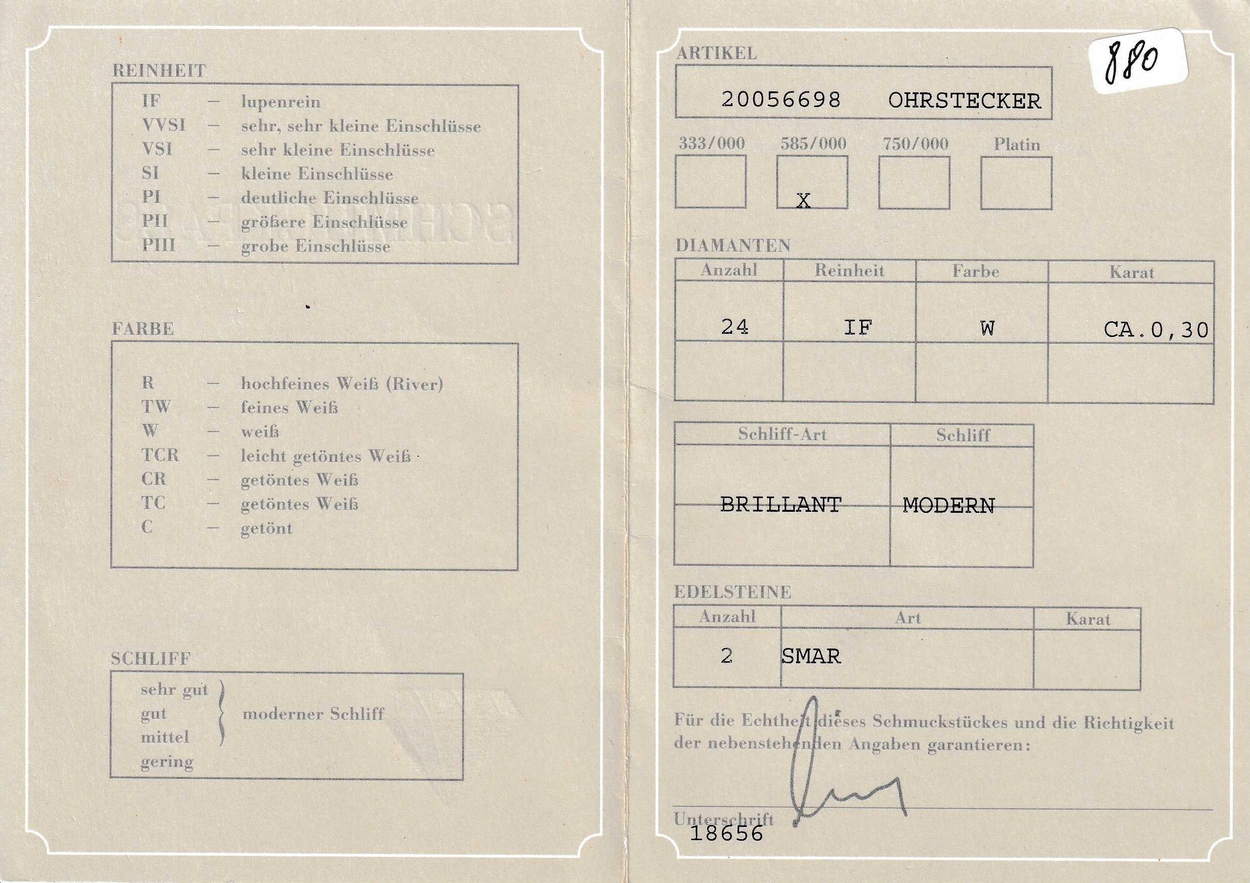 ca.1.0 ct, 24 Brillanten zus. ca. 0.30 ct Weiß/lr, ca. 3.2 g, mit Zertifikat Schätzpreis: