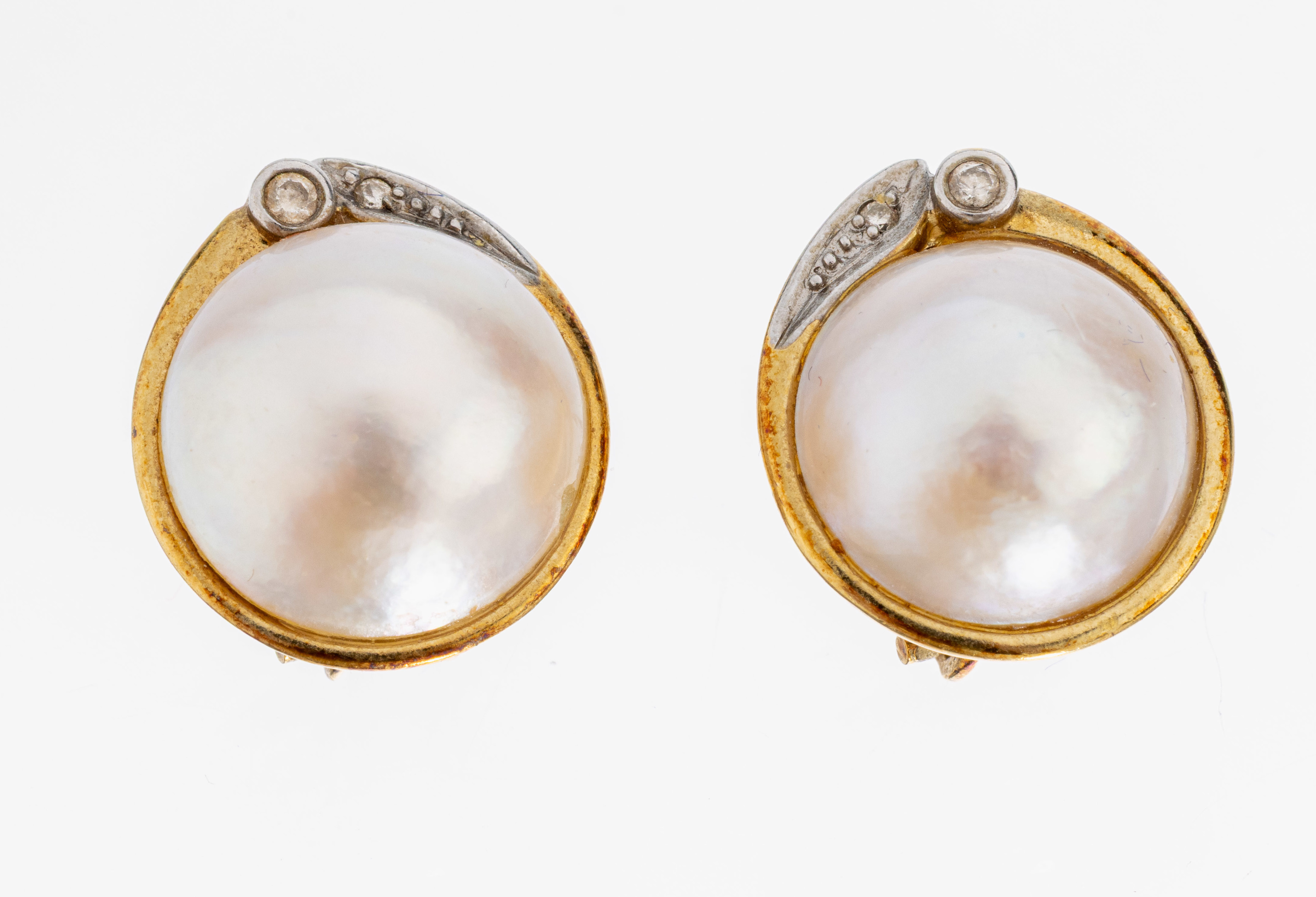 Paar 14 kt Gold Perl-Brillant-Ohrstecker, GG 585/000, 2 weiße Mabeperlen, D. ca.