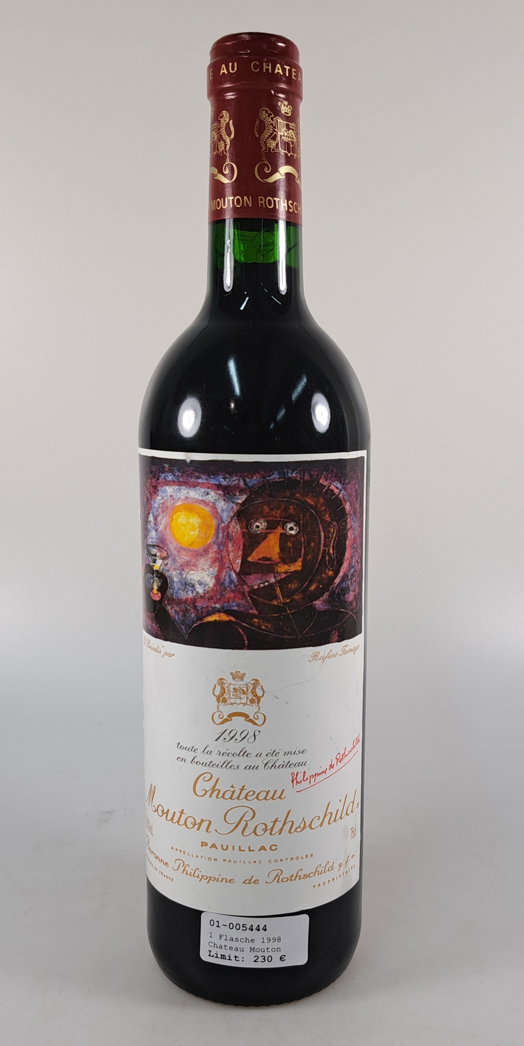1 Flasche 1998 Chateau Mouton Rothschild, Pauillac, ca. 750cl, 12,5%Vol., High Fill,