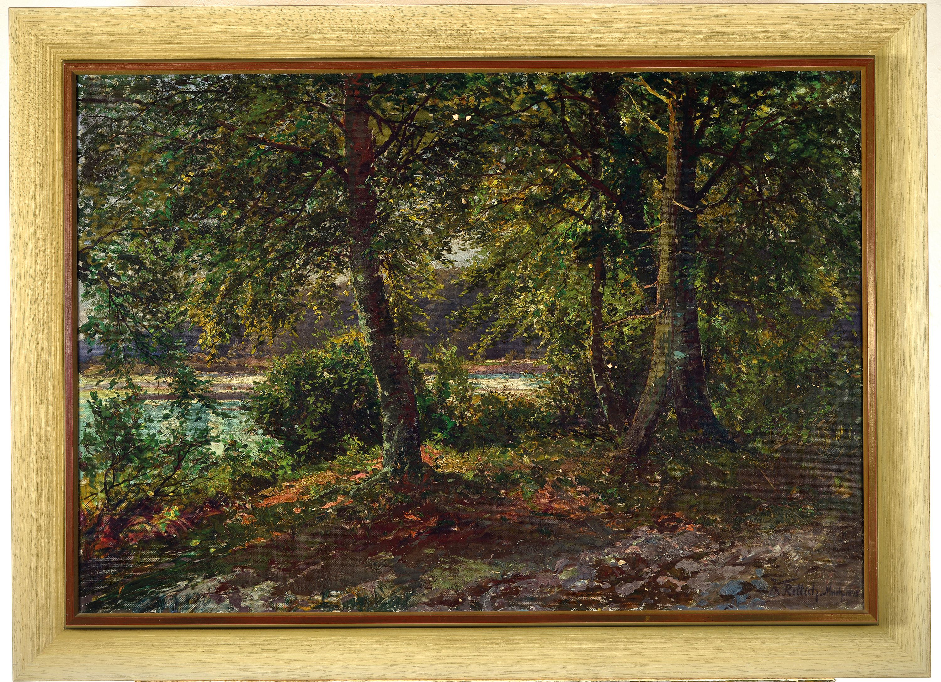 Karl Lorenz Rettich, 1841 Rosenhagen-1904 Lübeck, Ostseelandschaft, Waldinterieur