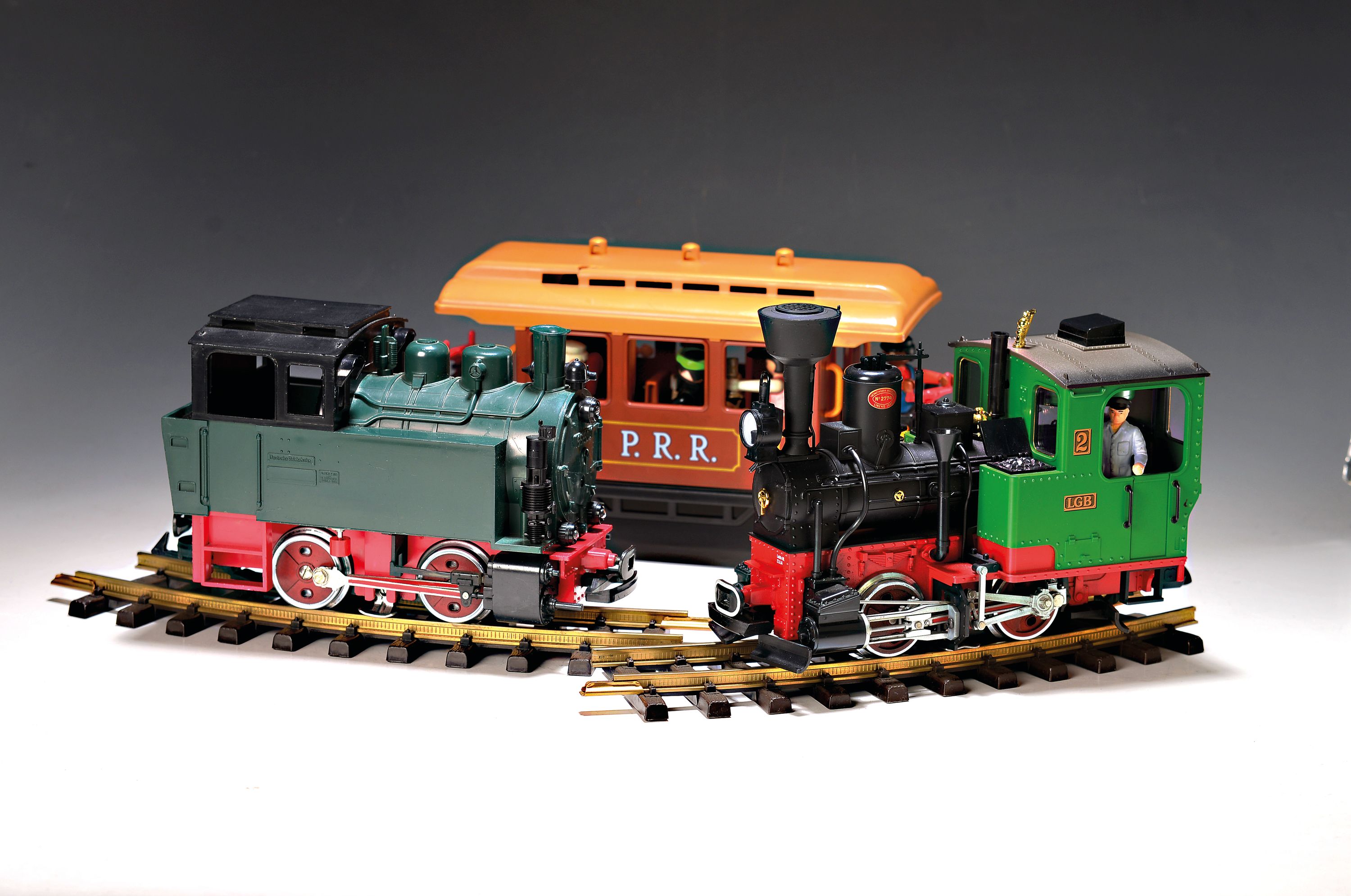 Lehmann Großbahn, Lok 20121, nahezu unbespielt, im orig. Karton; Lok 2075, im orig.