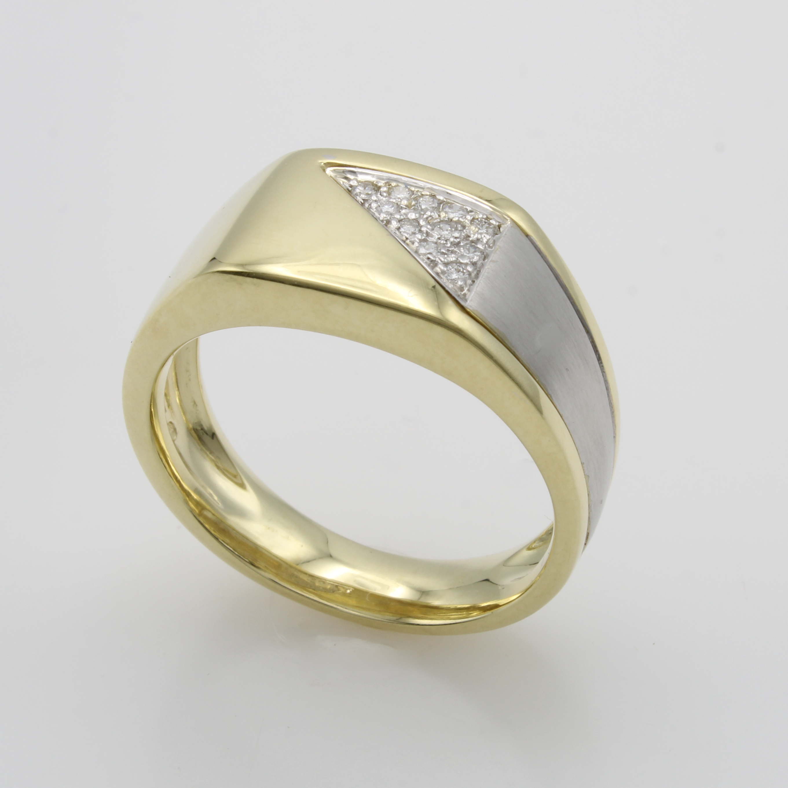 Herrenring mit Brillanten, GG/WG 585/000, Brill. in Dreieck gef. zus. ca. 0.09 ct Weiß/ vs, RW ca. 62 Schätzpreis: 3190, - EUR