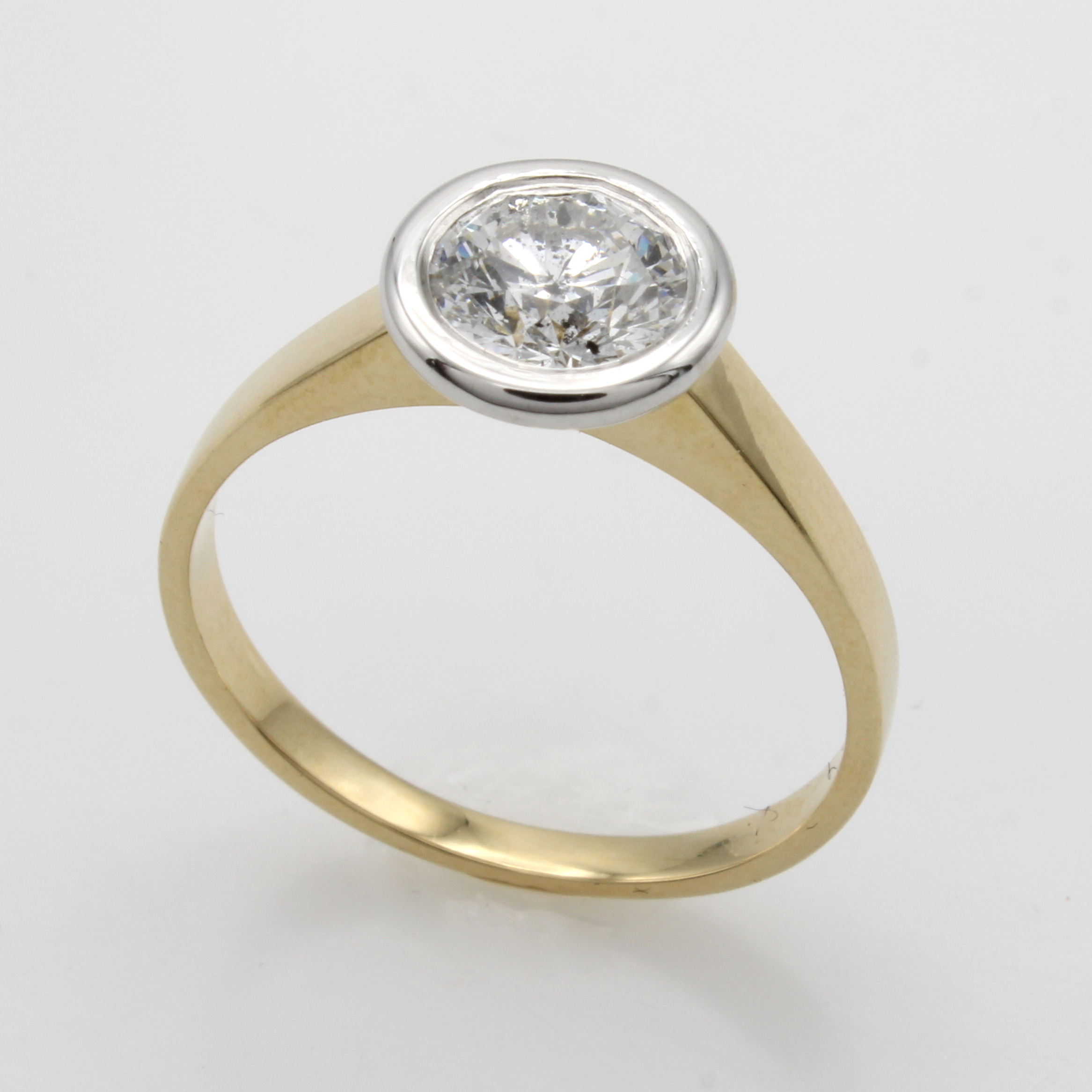 Ring mit Brillant, GG 585/000, Brill. in WG Zargenfassung ca. 1.01 ct feines Weiß/p, RW ca. 55 Schätzpreis: 4980, - EUR