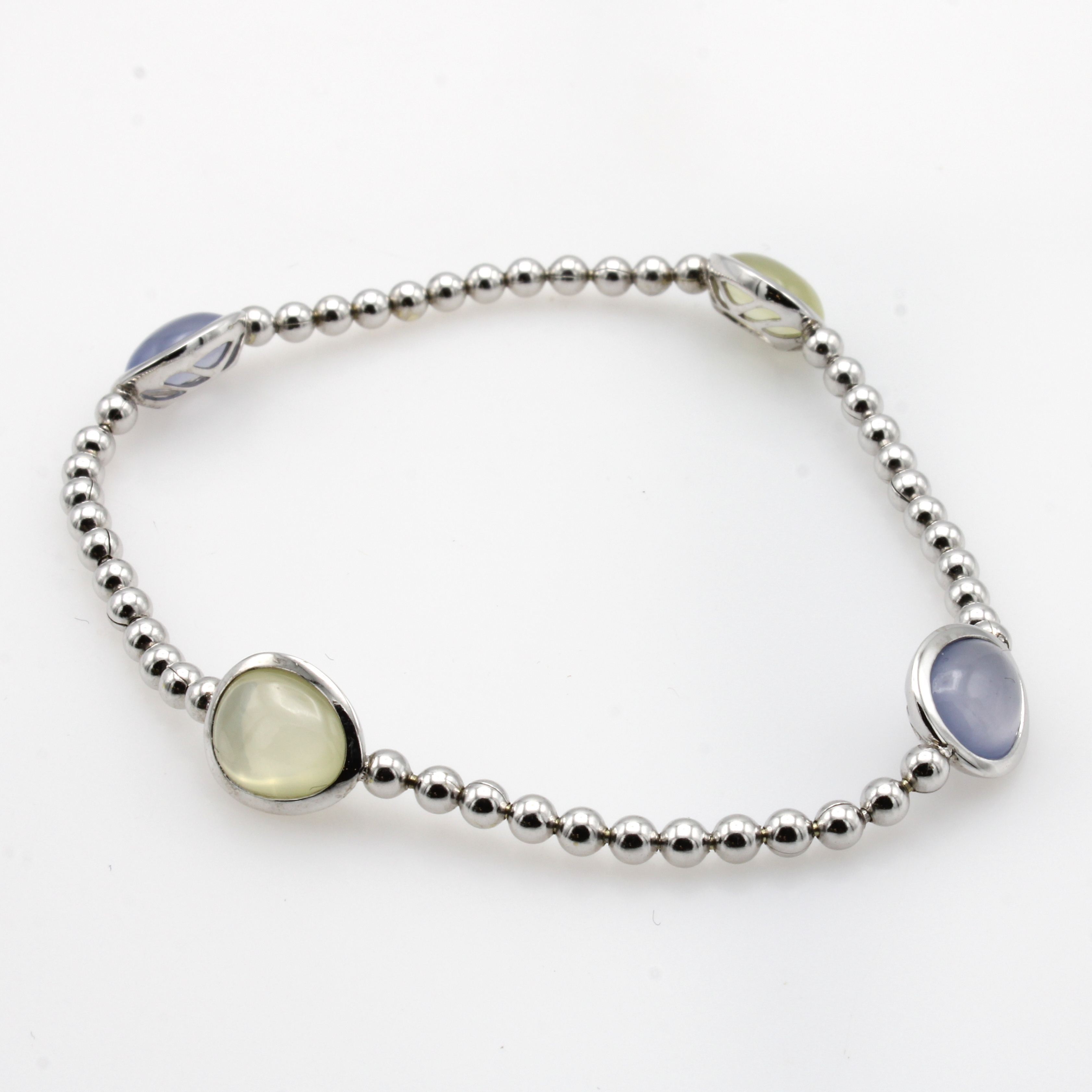Kugelarmband mit Farbsteinen, WG 585/000, 2 Calcedone u. 2 Lemoncitrine zus. ca. 4.20 ct, L. ca. 18 cm Schätzpreis: 3800, - EUR