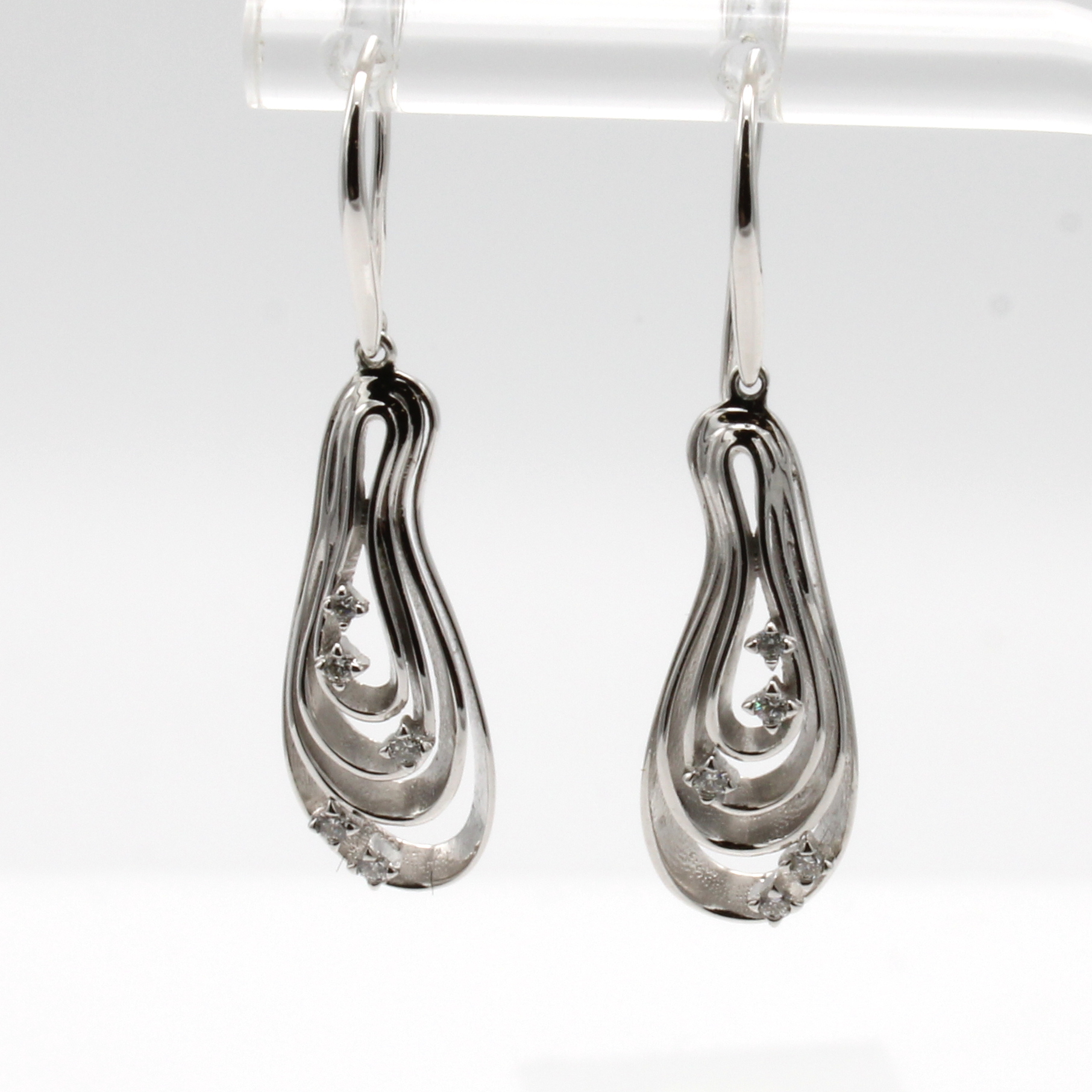 Paar Ohrgehänge mit Brillanten, WG 585/000, in 4-reihiger Tropfenform, Brill. zus. ca. 0.12 ct Weiß/si Schätzpreis: 1550, - EUR