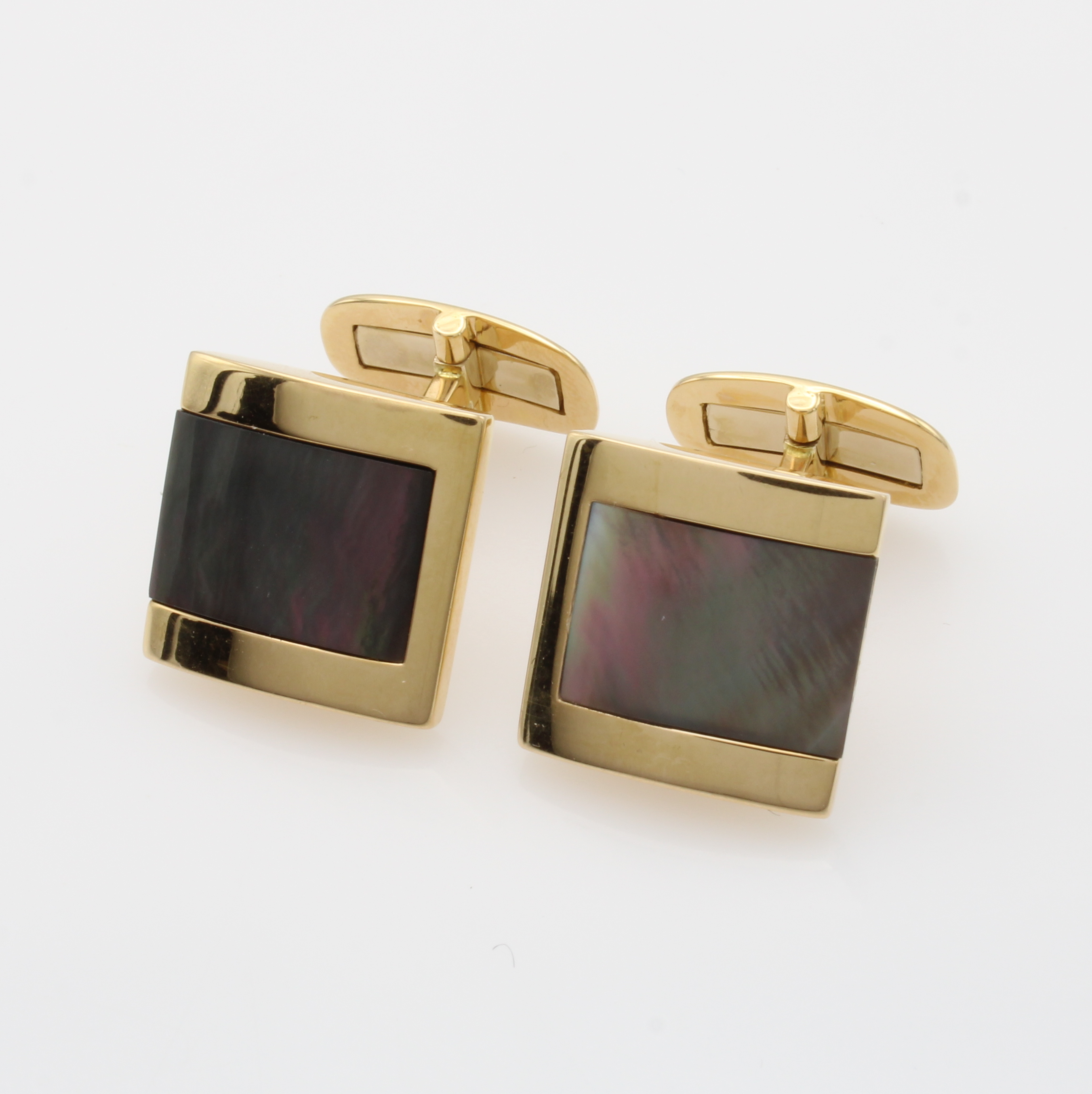 Paar Manschettenknöpfe mit Perlmutt, RG 750/000, 2 rechteckige Perlmutteinlagen Schätzpreis: 4550, - EUR