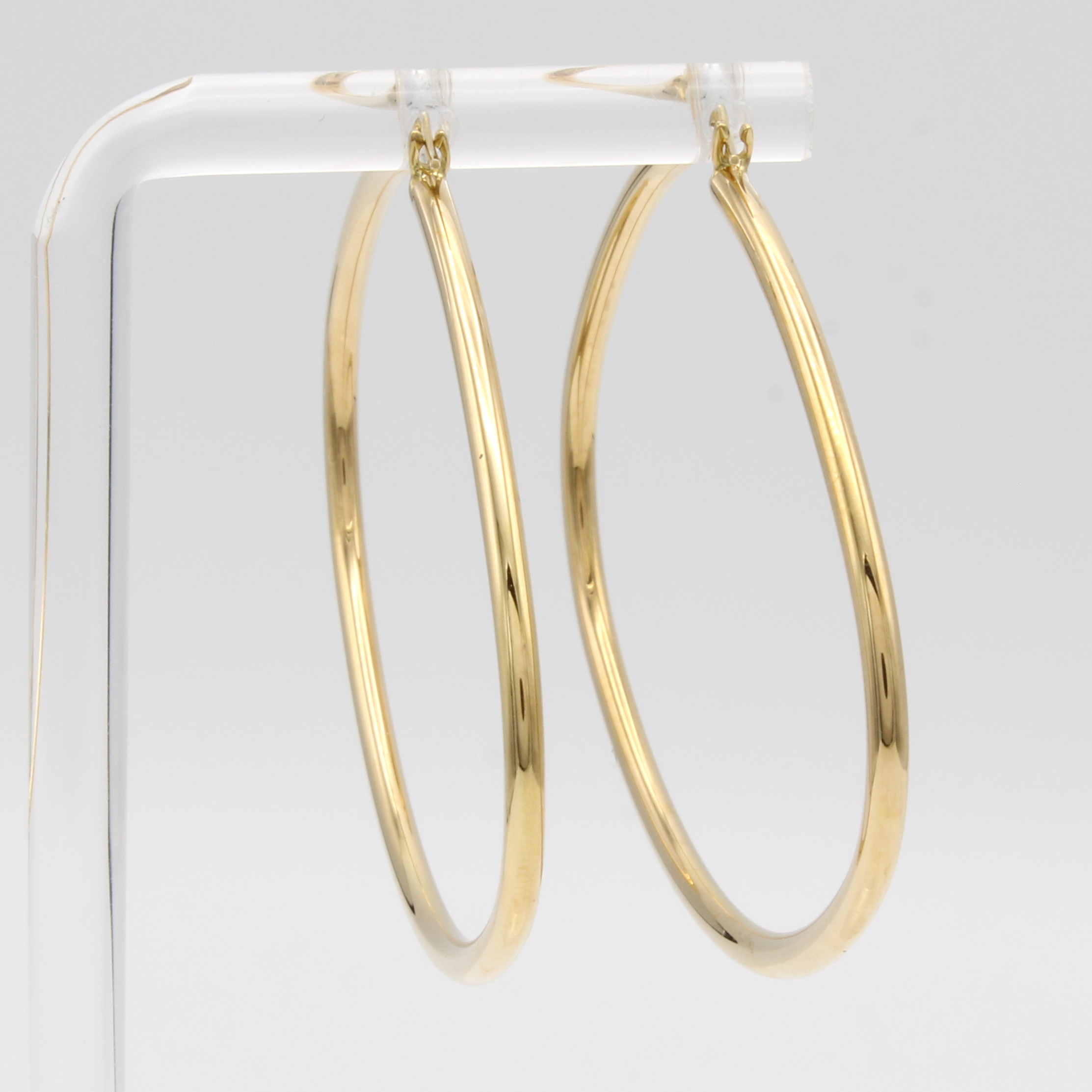 Paar Creolen, GG 750/000, querovale Form, glattes Design