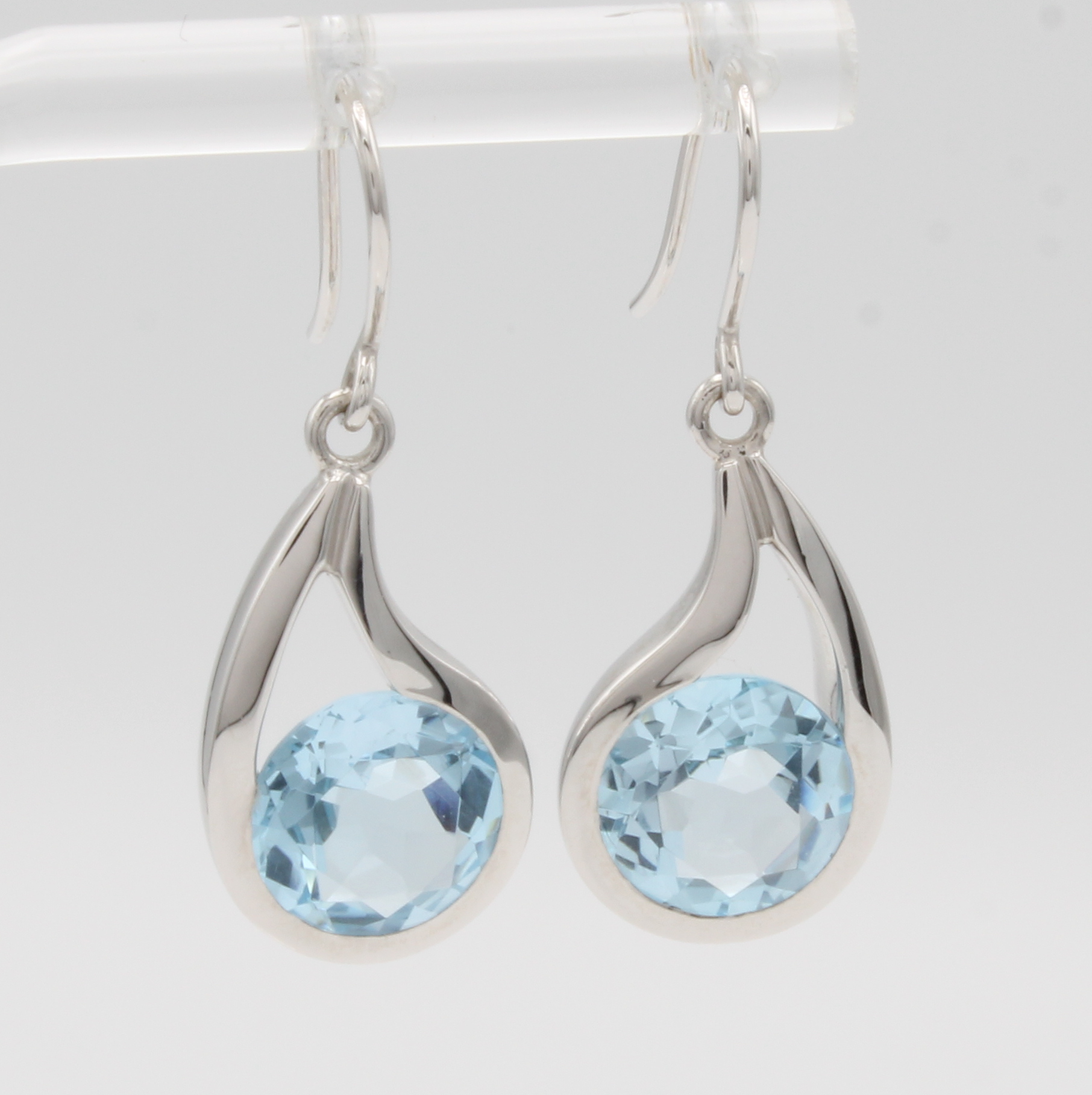 Paar Ohrhaken mit Blautopasen, WG 750/000, 2 Blautopase (beh.) ca. 7.86 ct, Tropfenform Schätzpreis: 3500, - EUR