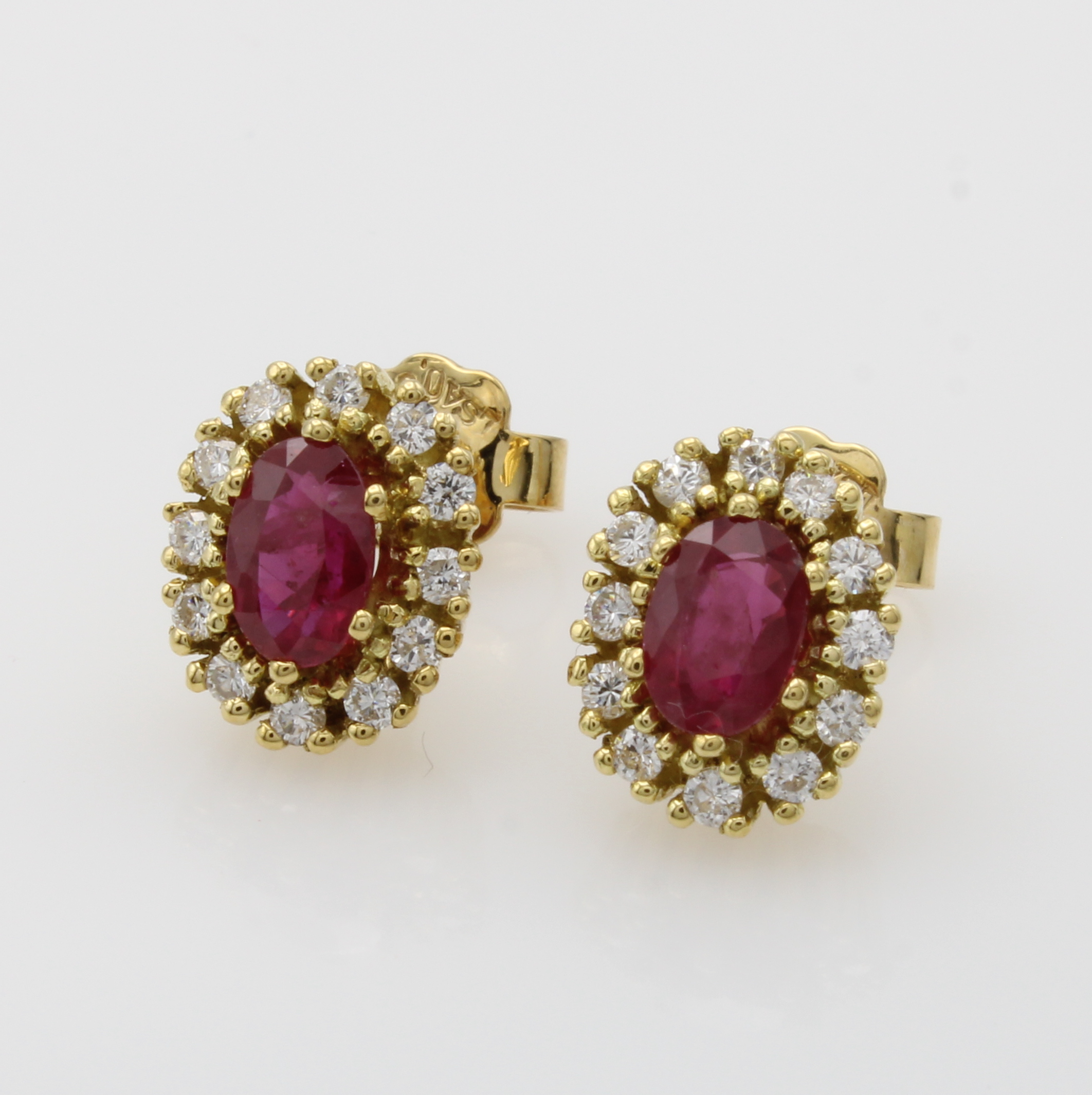 Paar Ohrstecker mit Rubinen und Brillanten, GG 750/000, 2 ovale Rubine umgeben v. Brill. zus. ca. 0.36 ct Weiß/si Schätzpreis: 4500, - EUR