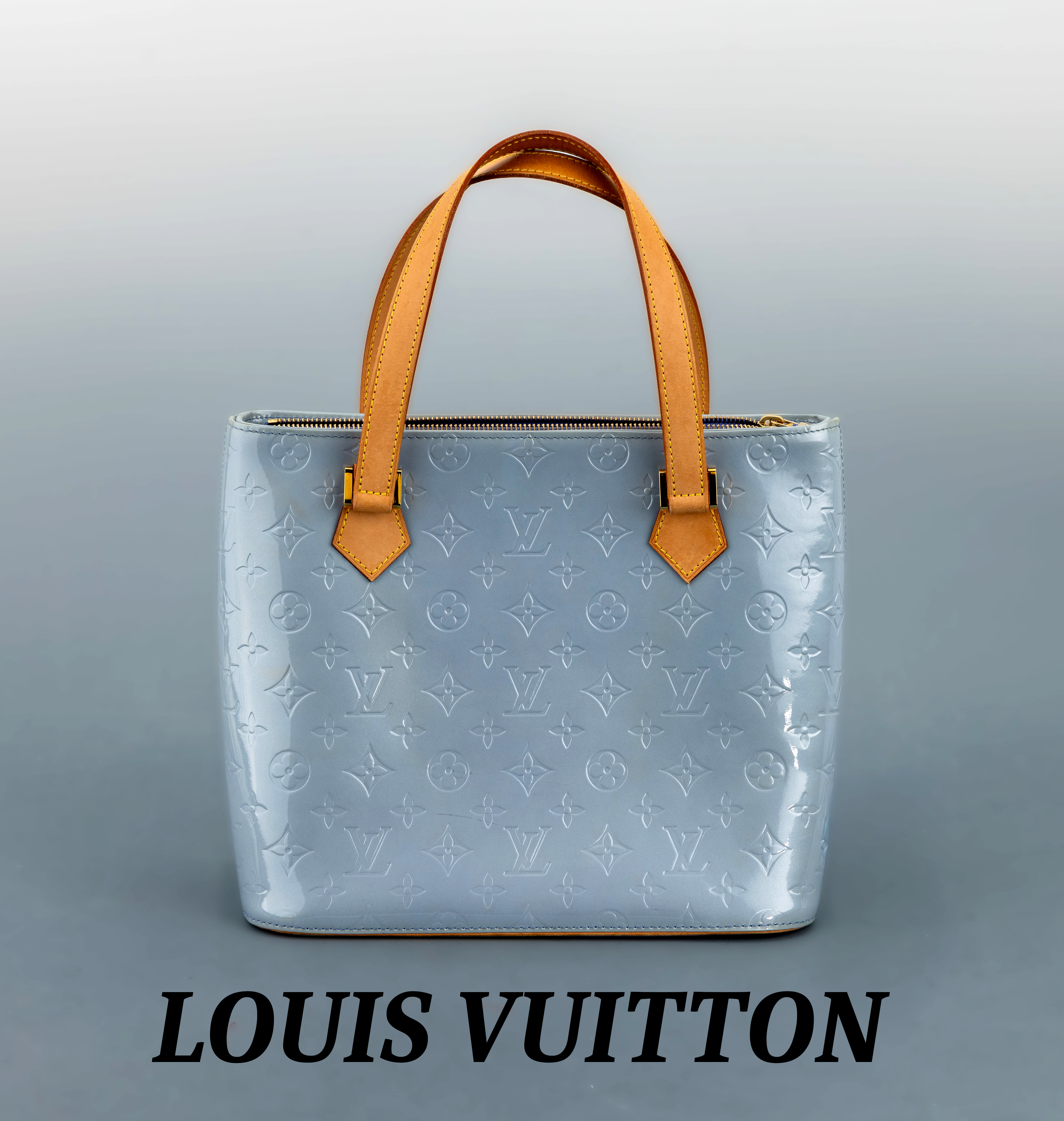 LOUIS VUITTON Handtasche, "Houston, Monogram Vernis", hellblau, 2 Tragehenkel naturfarb.Leder,