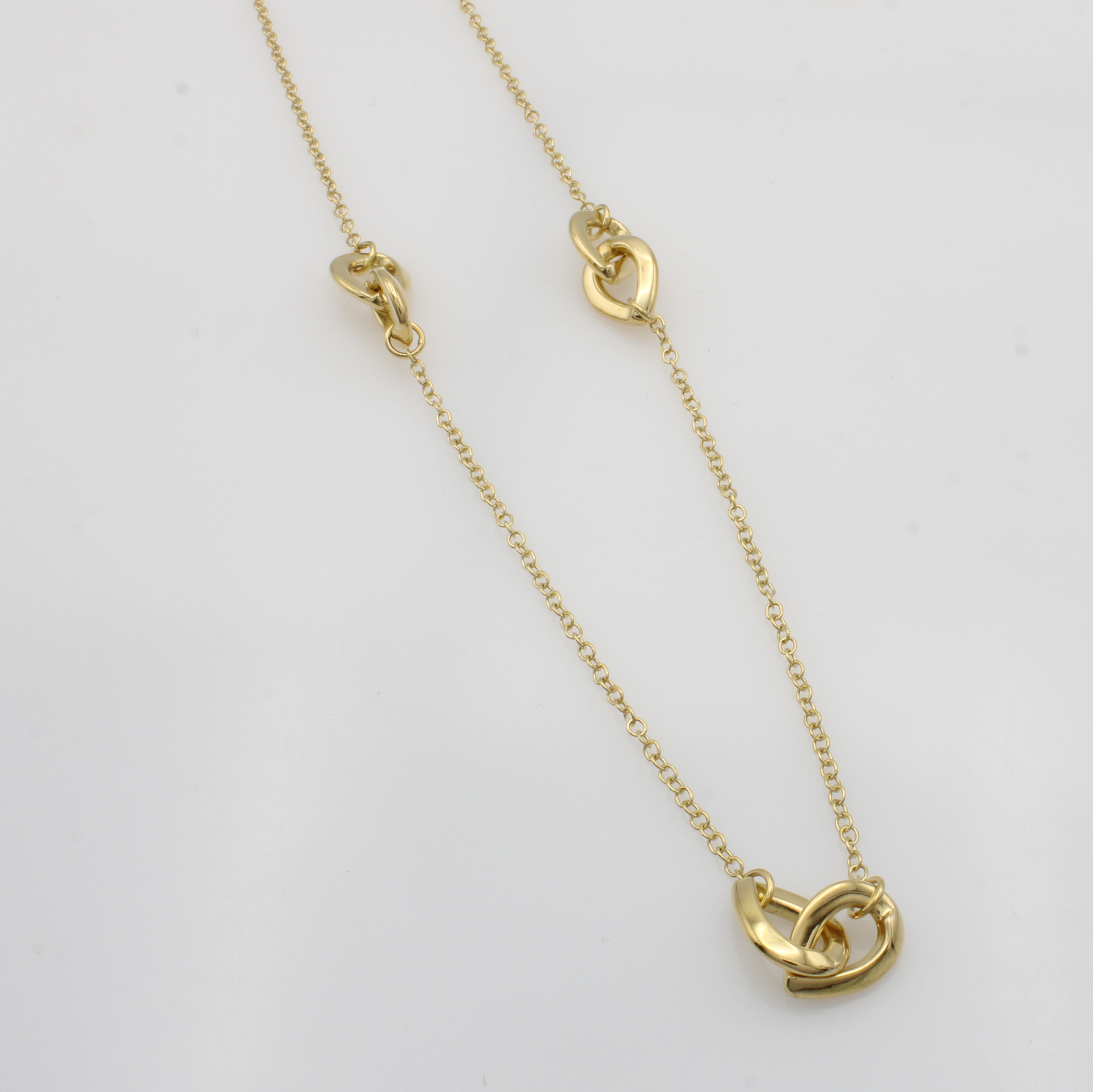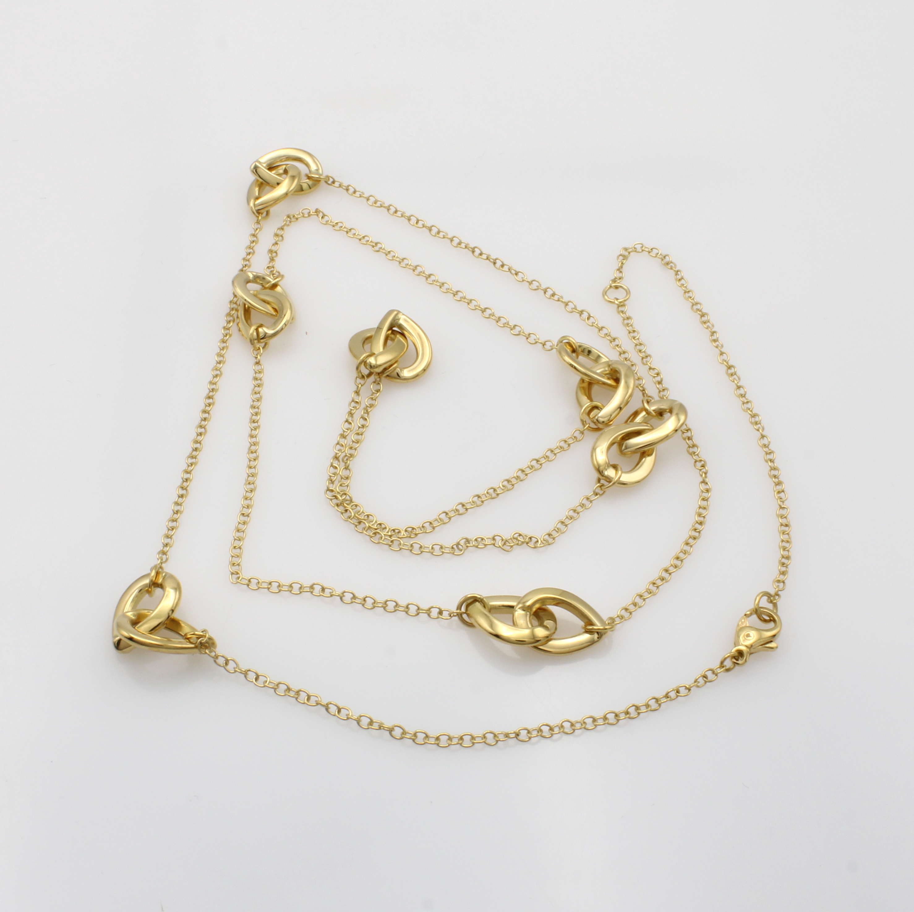 Kette, GG 750/000, tropfenf. Zwischenteile paarweise eingearbeitet, in L. ca. 80 u. 90 cm tragbar