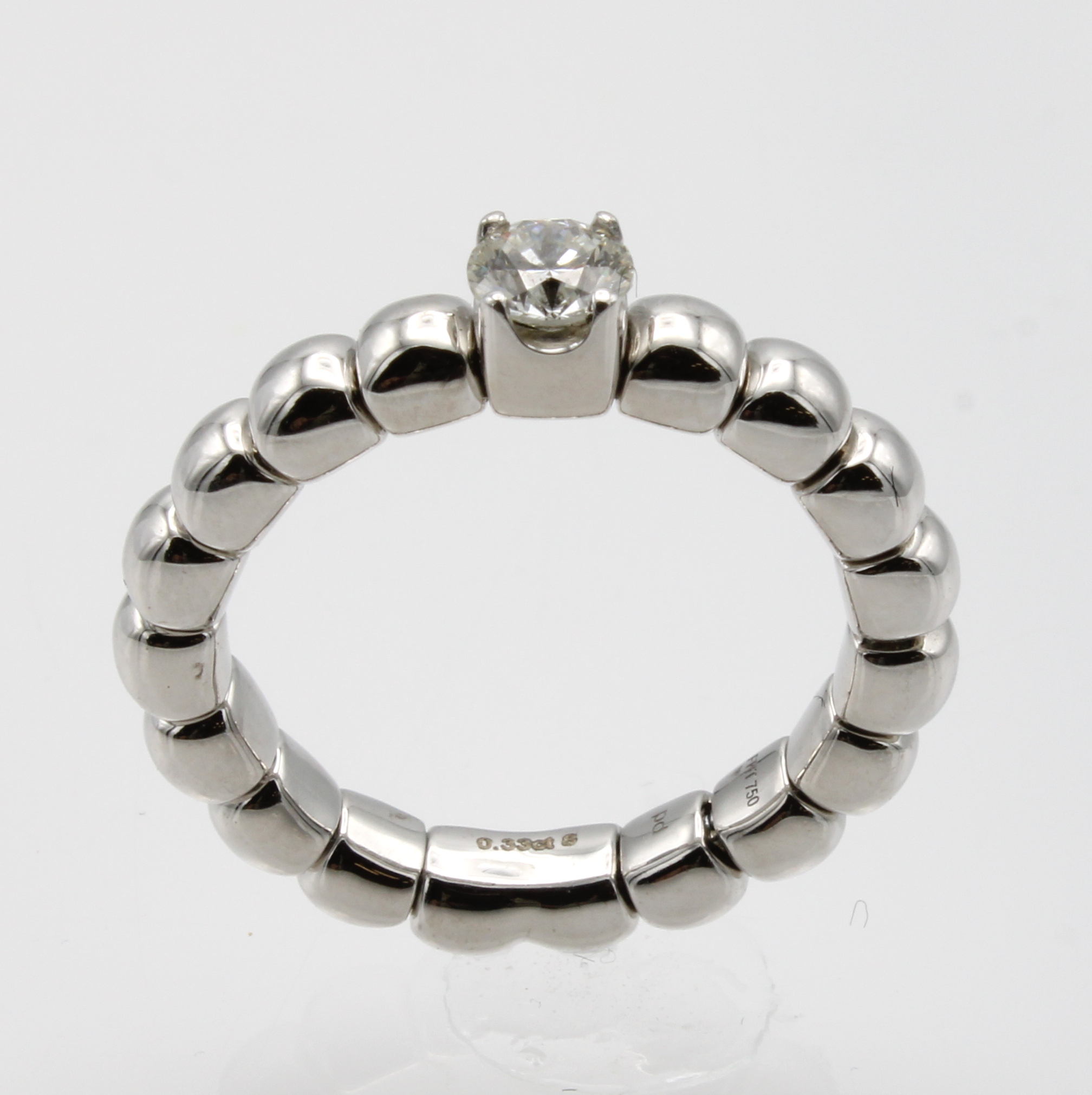 Ring mit Brillantsolitär, WG 750/000 im Kugeldesign, l. flexibel, Brill. ca. 0.30 ct Weiß/si, RW ca. 52 Schätzpreis: 4200, - EUR