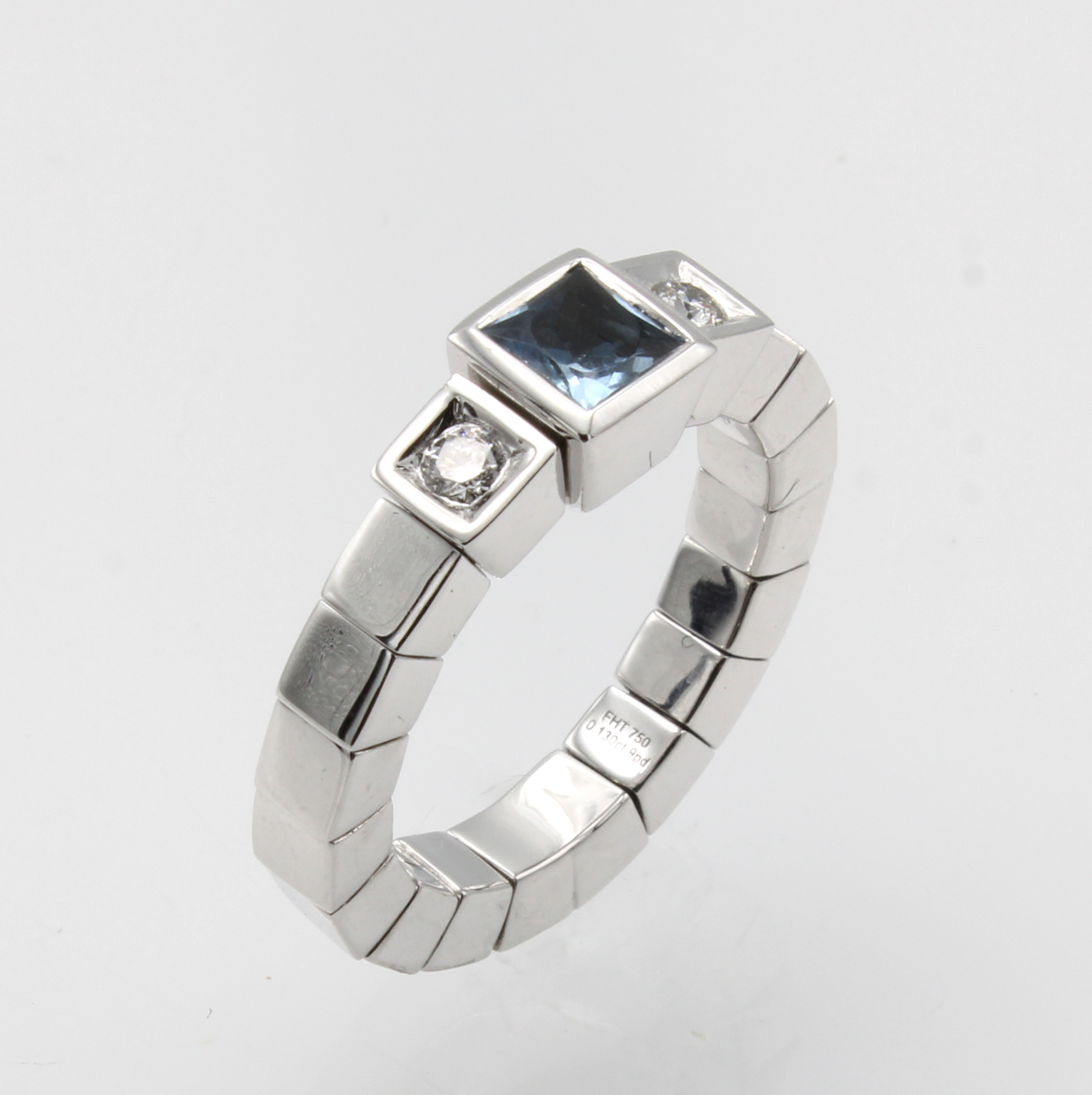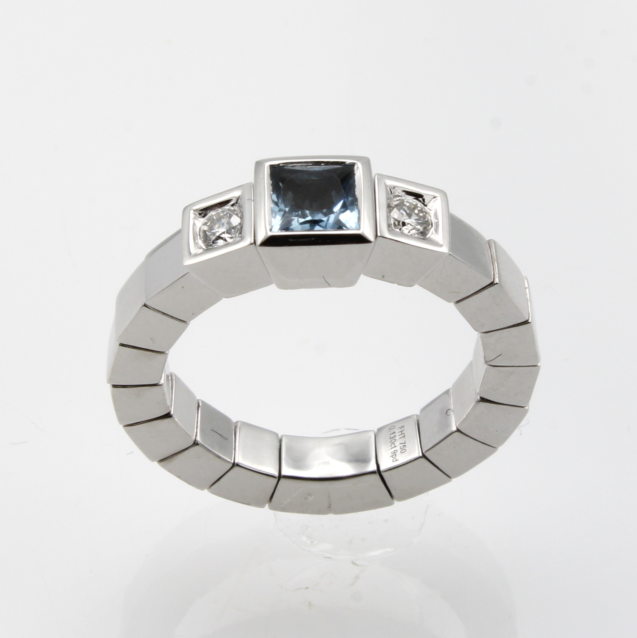 Ring mit Aquamarin und Brillanten, WG 750/ 000, l. flexibel, Aquamarin ca. 0.70 ct, 2 Brill. zus. ca. 0.12 ct Weiß/si, RW ca. 54 Schätzpreis: 4900, - EUR