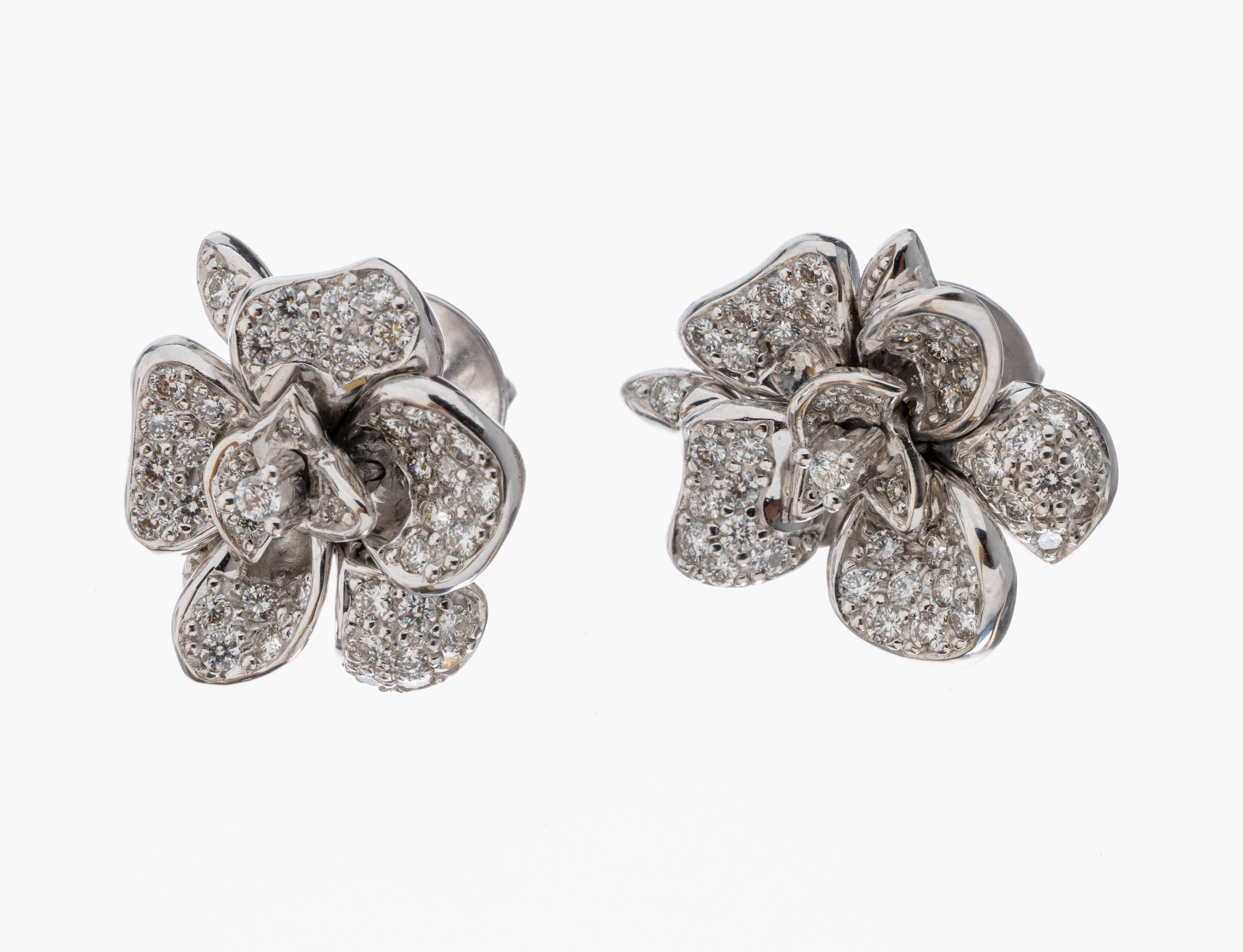Paar 14 kt Gold Brillant-Ohrstecker, WG 585/000, in Form einer Blüte, Blätter l.