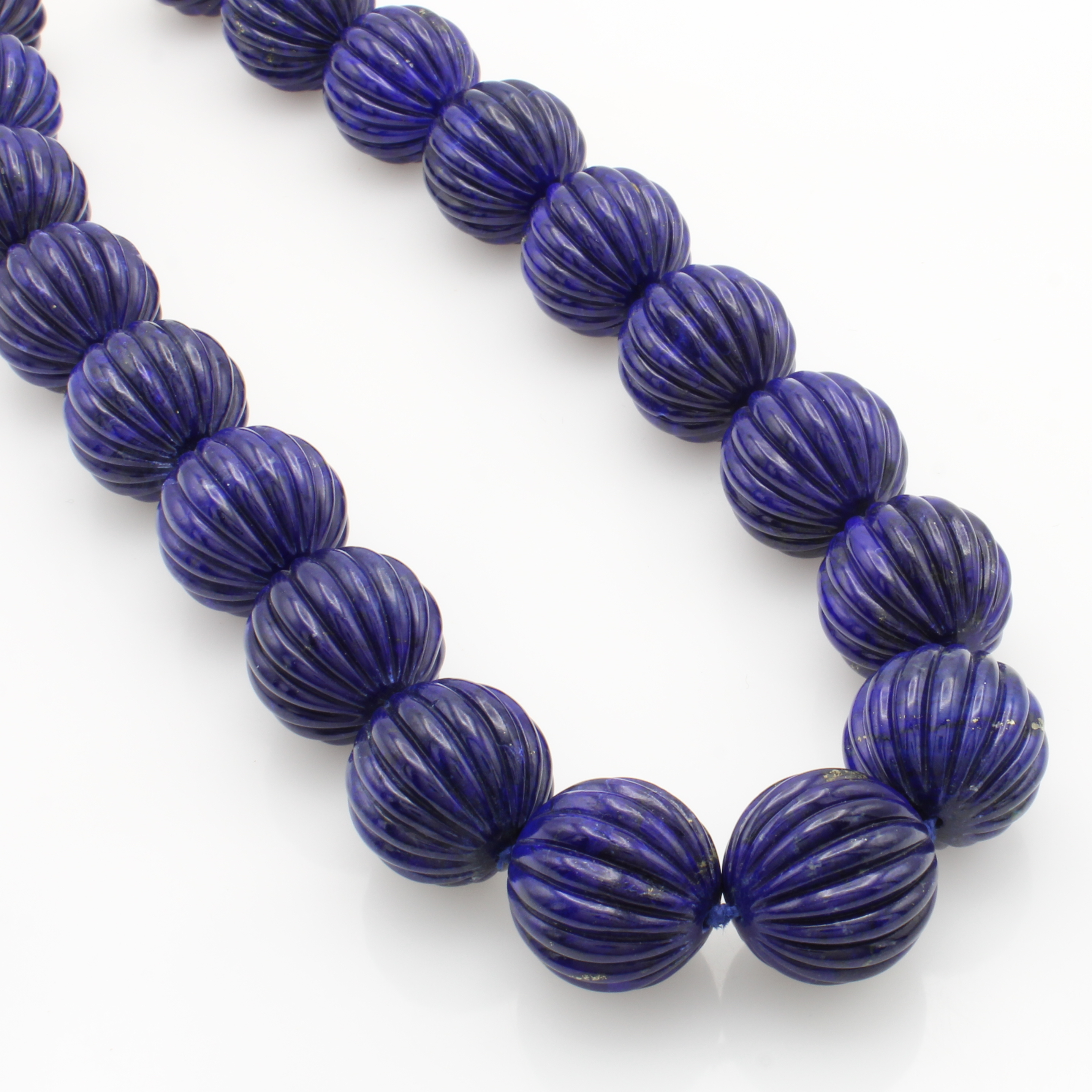 Lapislazulikette, Karabinerschl. verg., geriefte Lapislazulikugeln ca. 20 mm, L. ca. 45 cm Schätzpreis: 6850, - EUR