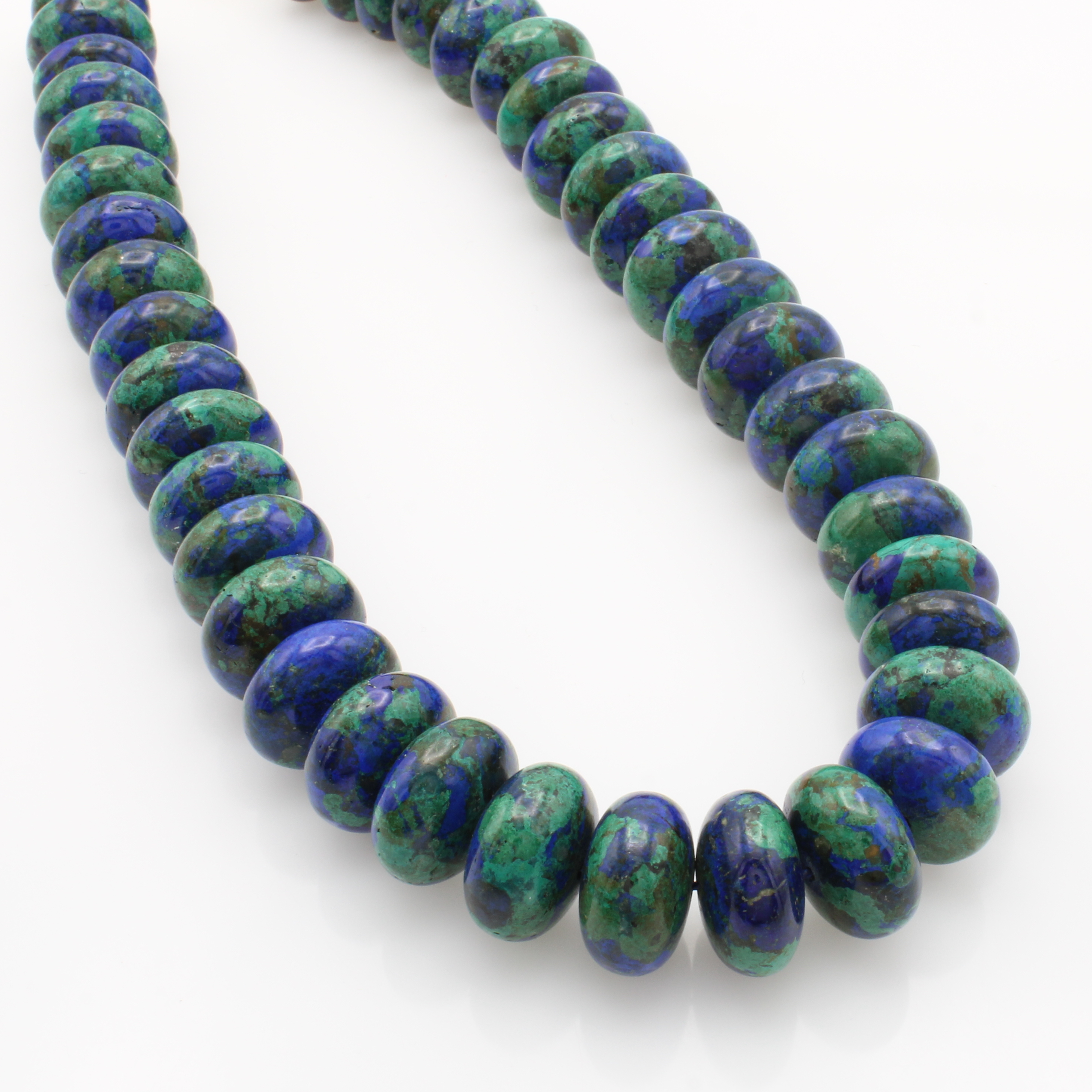 Azurit/Malachitkette, Karabinerschl. verg., Rondelle ca. 18 mm, L. ca. 43 cm Schätzpreis: 680, - EUR