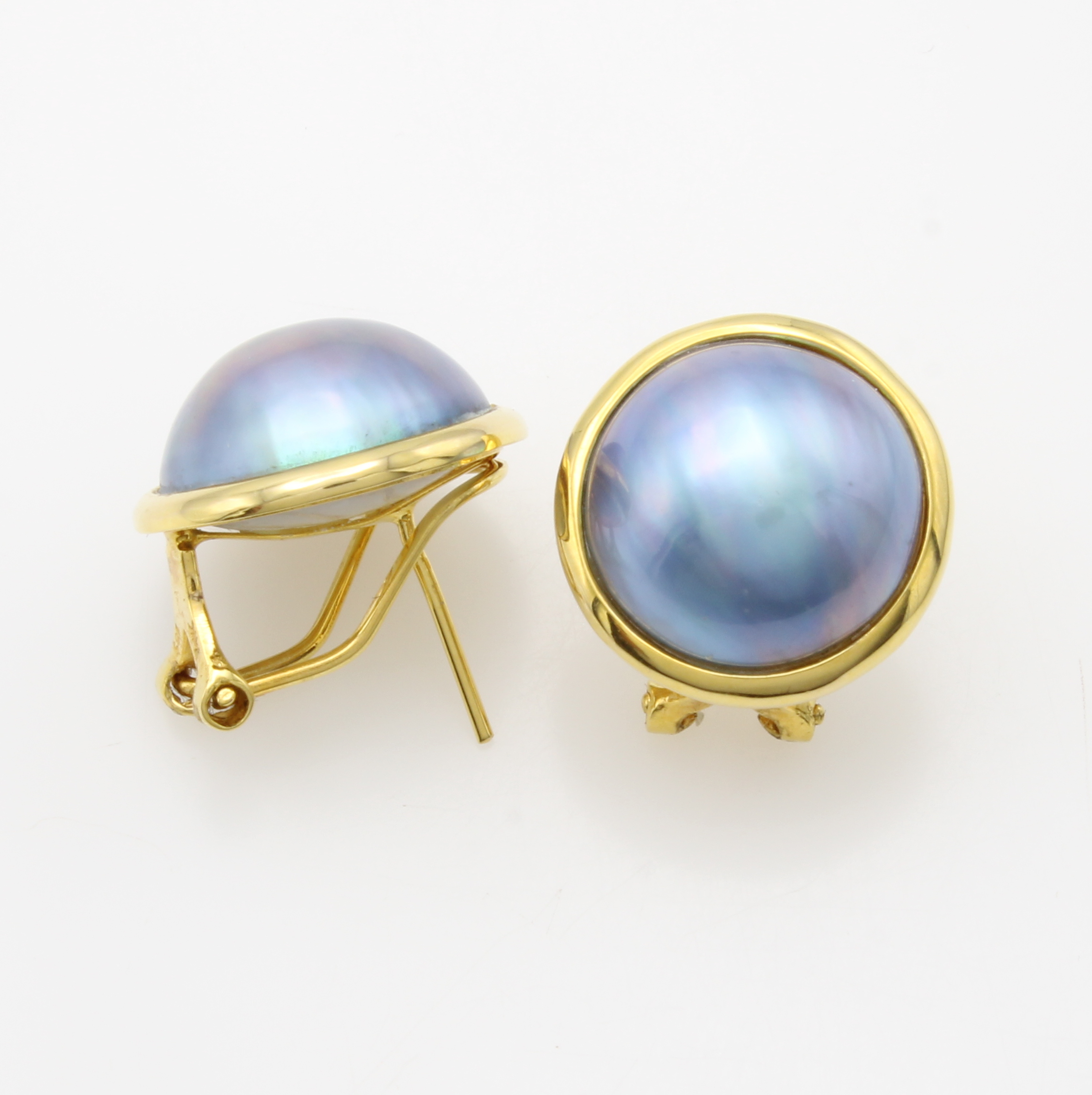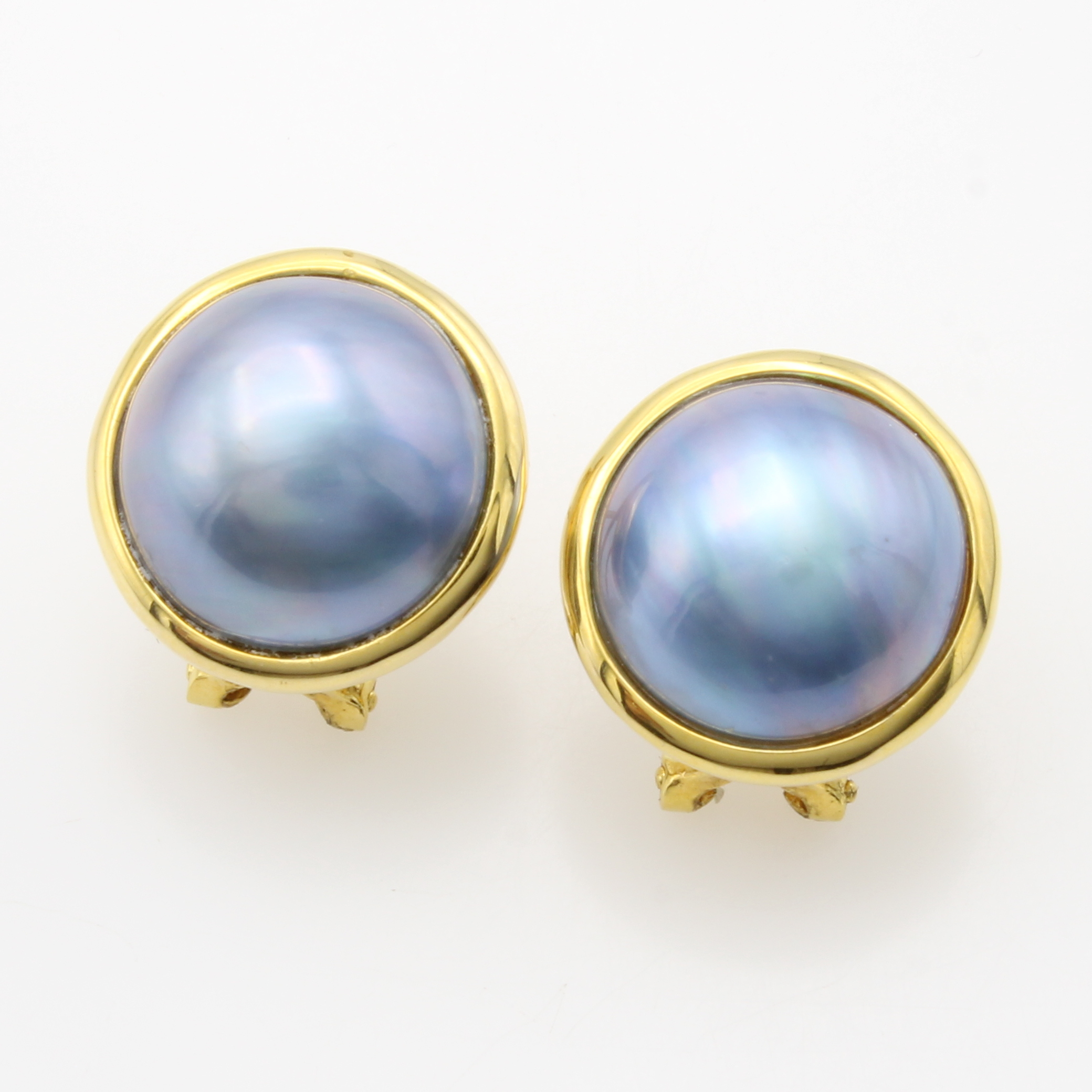 Paar Ohrstecker mit Mabeperlen, GG 585/000, 2 graue Mabeperlen in glatten Fassungen ca. 13 mm, m. Clipbrisuren Schätzpreis: 780, - EUR