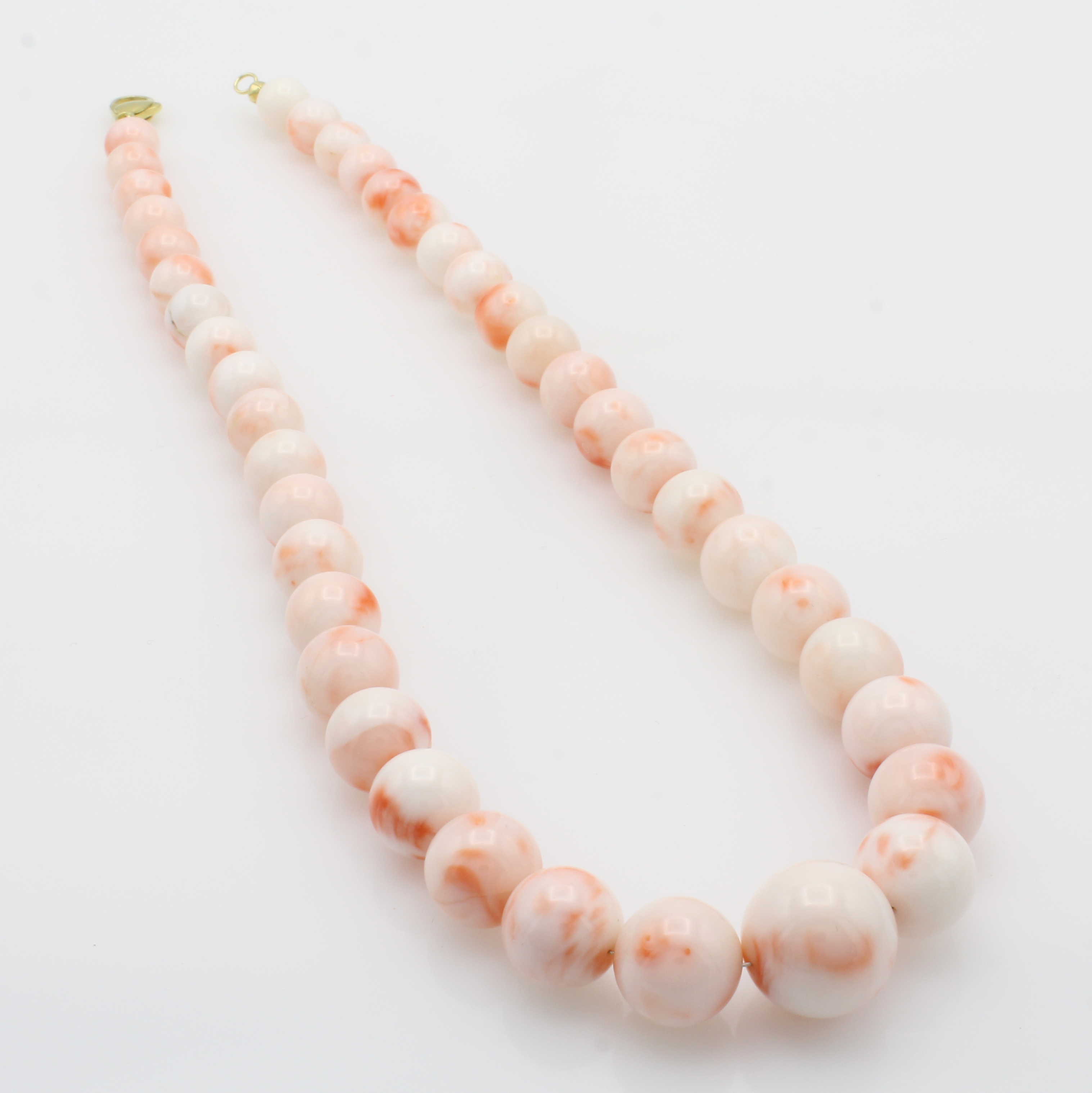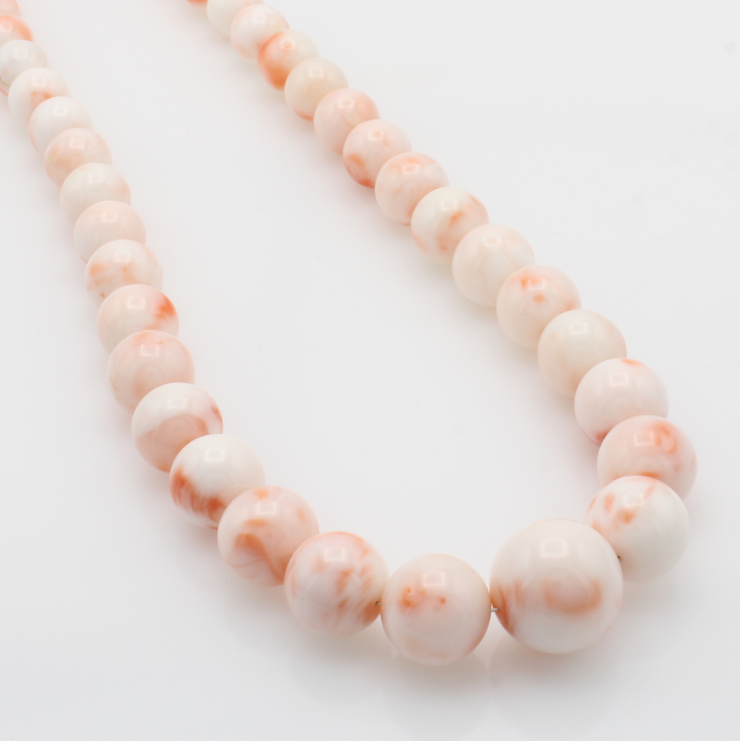 Korallenkette, Karabinerschl. verg., Korallkugeln im Verlauf v. 10-18 mm, tiefsee -rosa, L. ca. 49 cm, Versand nur innerh. der EU Schätzpreis: 3000, - EUR