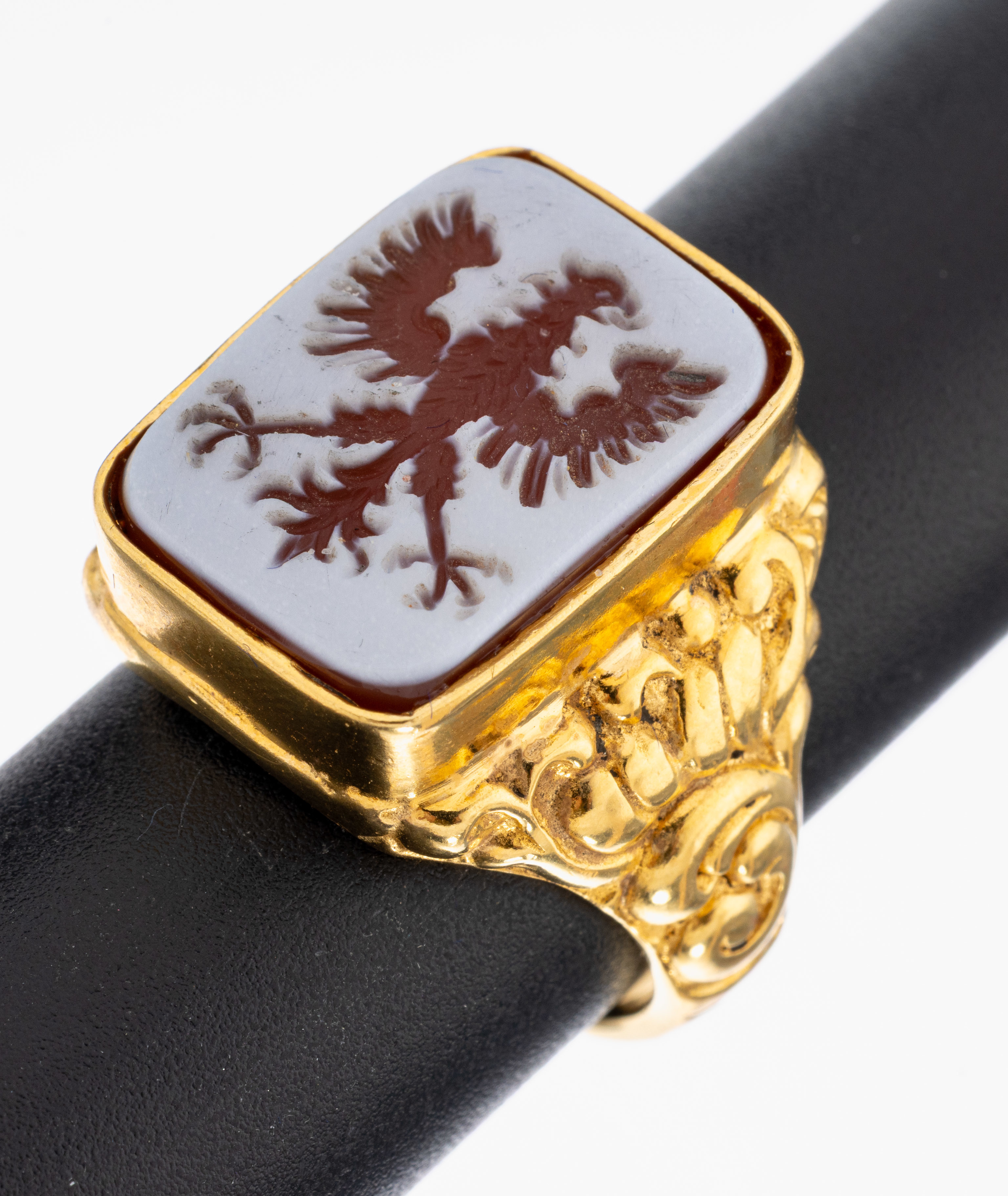 Siegelring mit Lagenachat, Silber vergoldetDarstellung "Reichsadler", Ringschultern