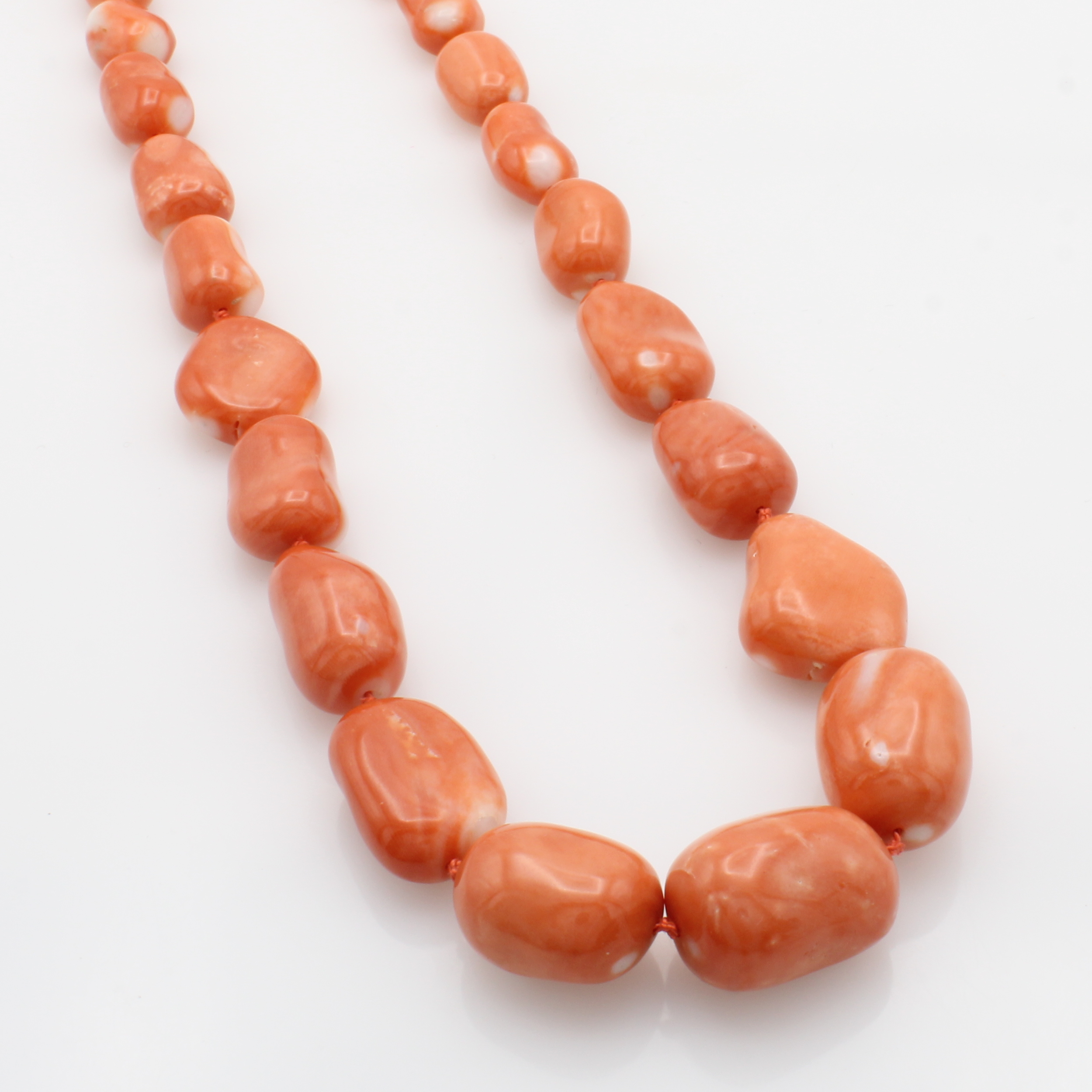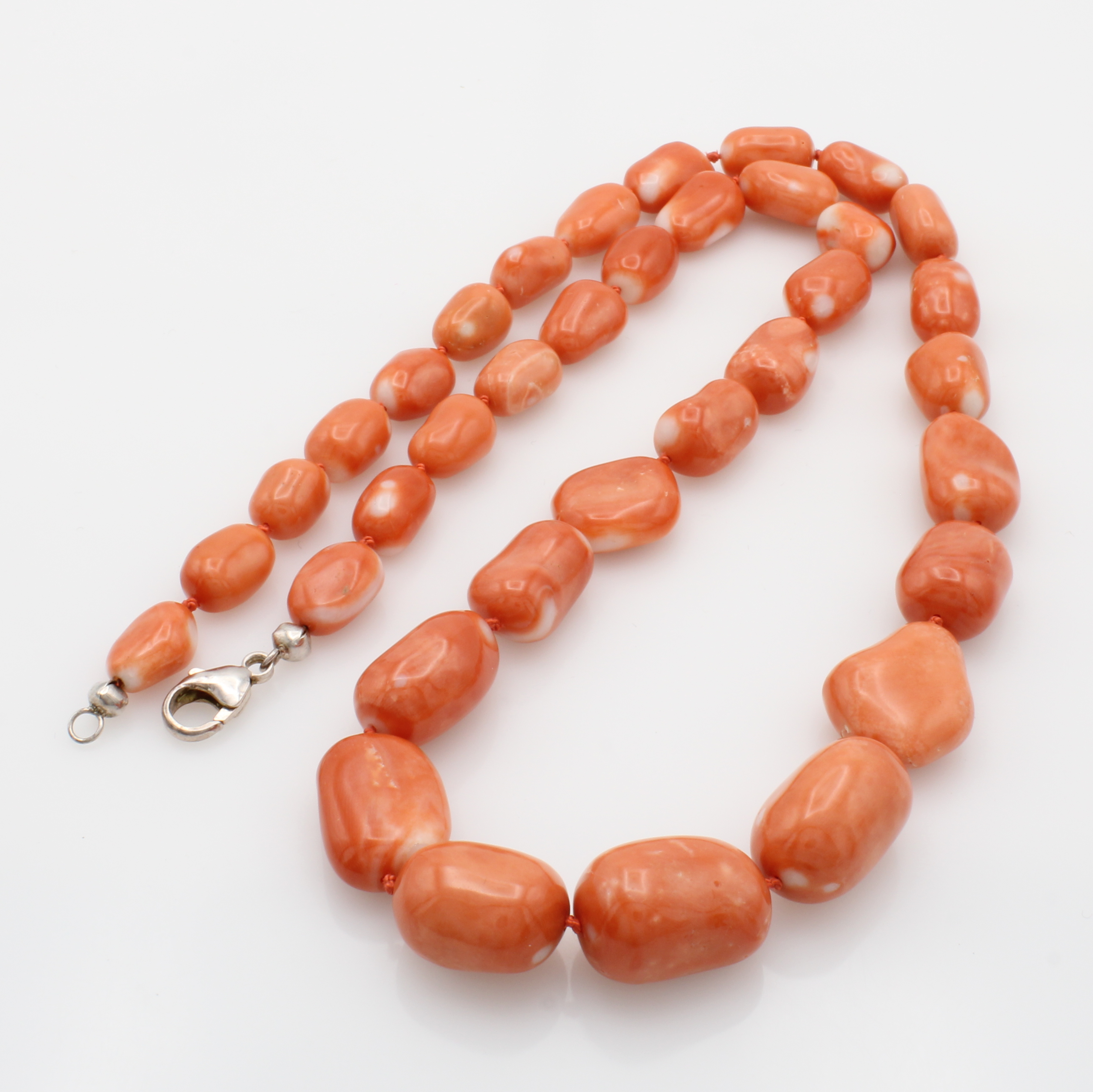 Korallenkette, Karabinerschl. 925er Silber, Korallnuggets im Verlauf, Natur Momo, Versand nur innerhalb der EU L. ca. 70 cm Schätzpreis: 4700, - EUR