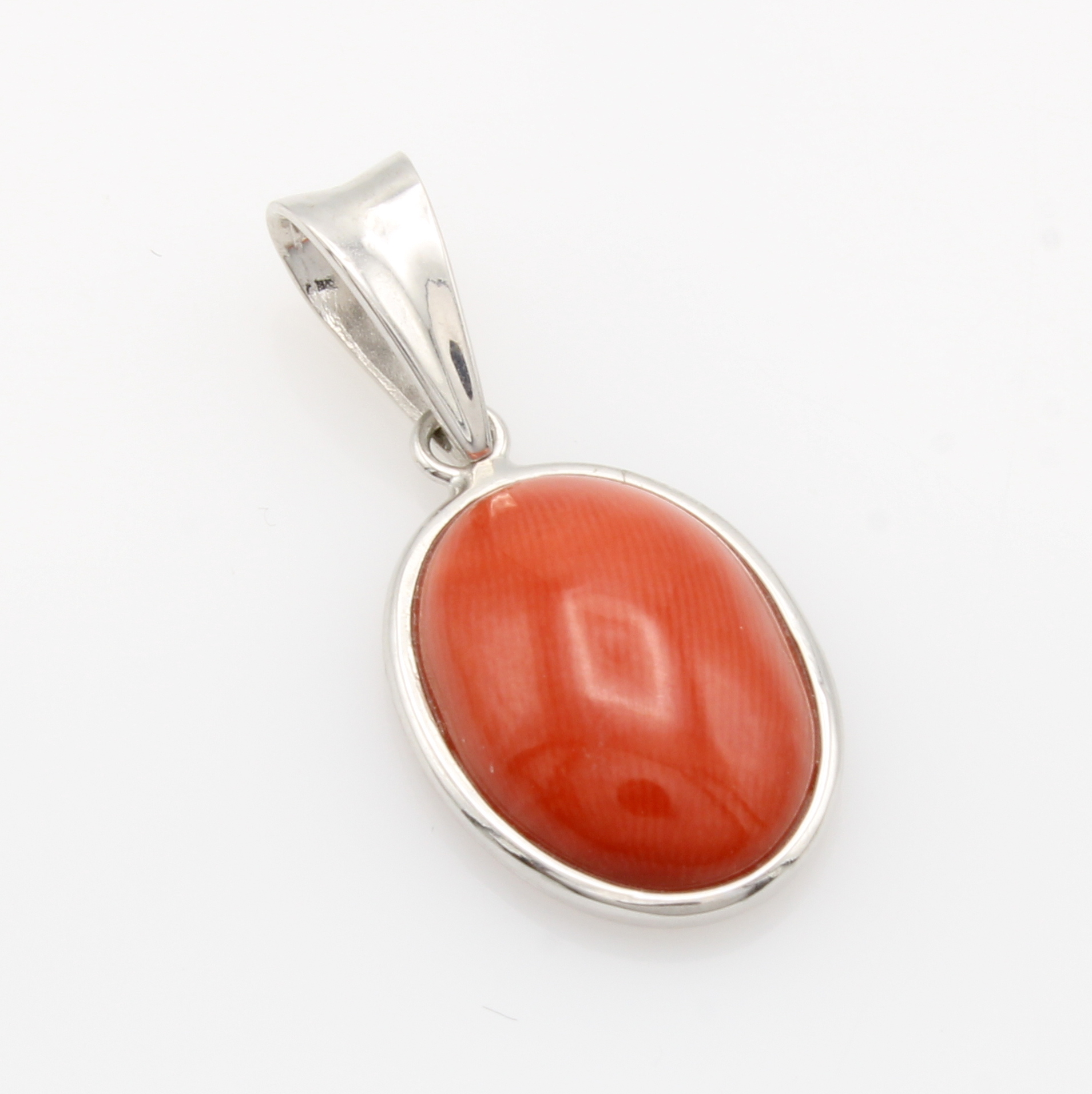 Anhänger mit Koralle, WG 750/000, ovale Koralle in glatter Fassung ca. 14x10 mm, Versand nur innerhalb der EU, Sardegna Rot Schätzpreis: 550, - EUR
