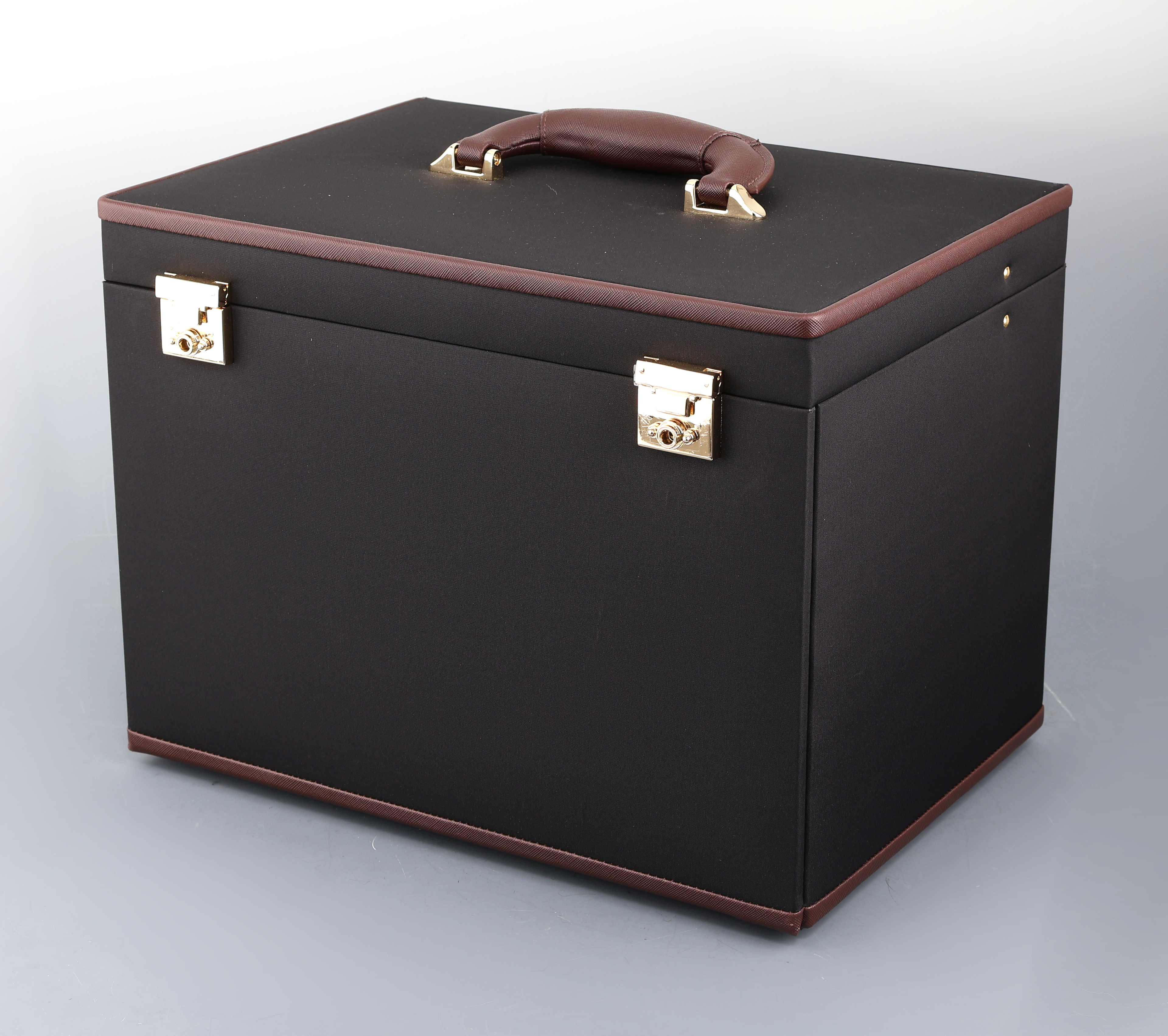 XXL Schmuckkoffer aus schwarzer Mikrofaser, massiver Holzkorpus mit Mikrofaser eingefaßt