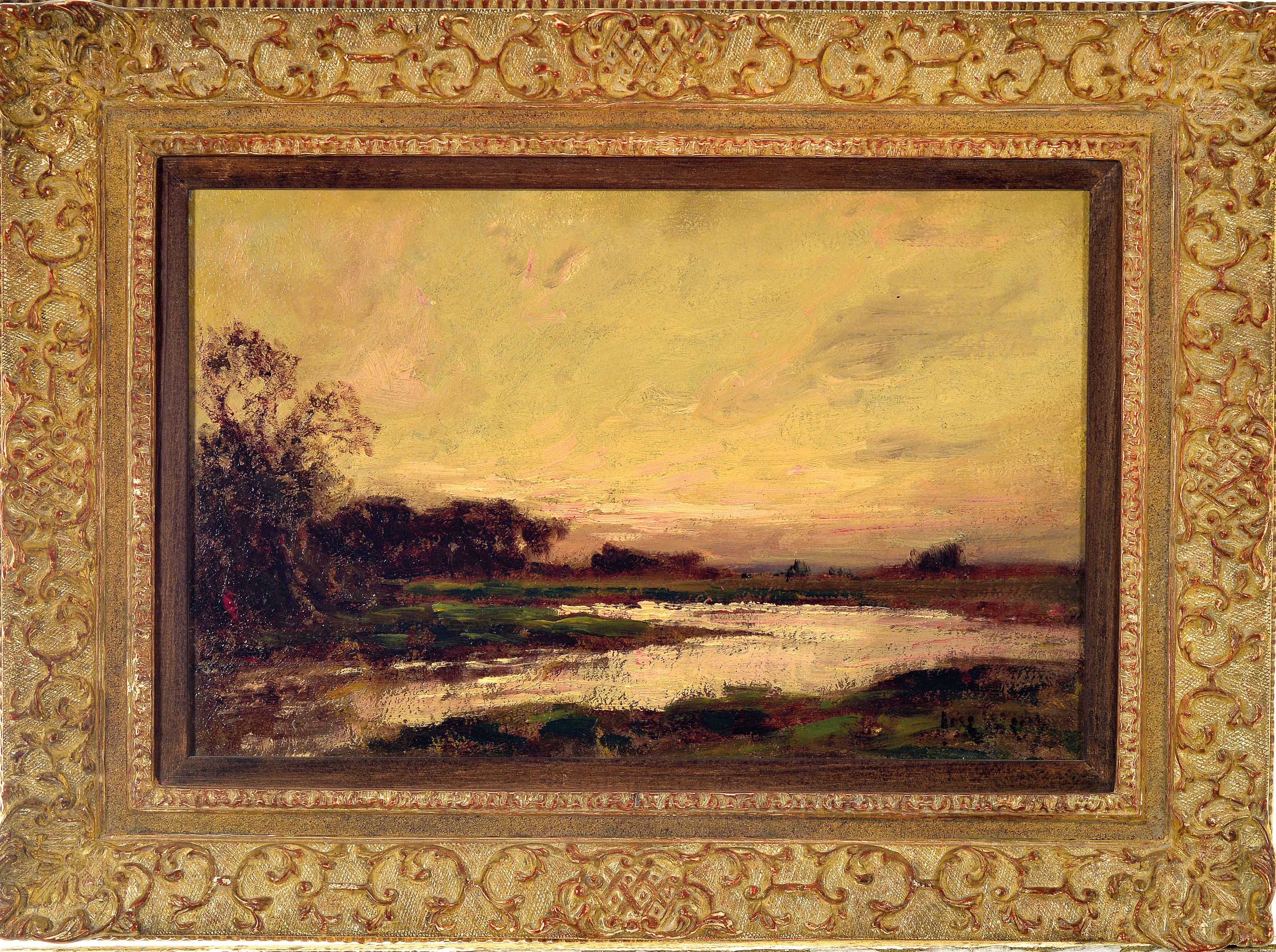 Jose Weiss, 1859-1919, Flußlandschaft im Abendrot, Öl/Holz, rechts unten sign.,