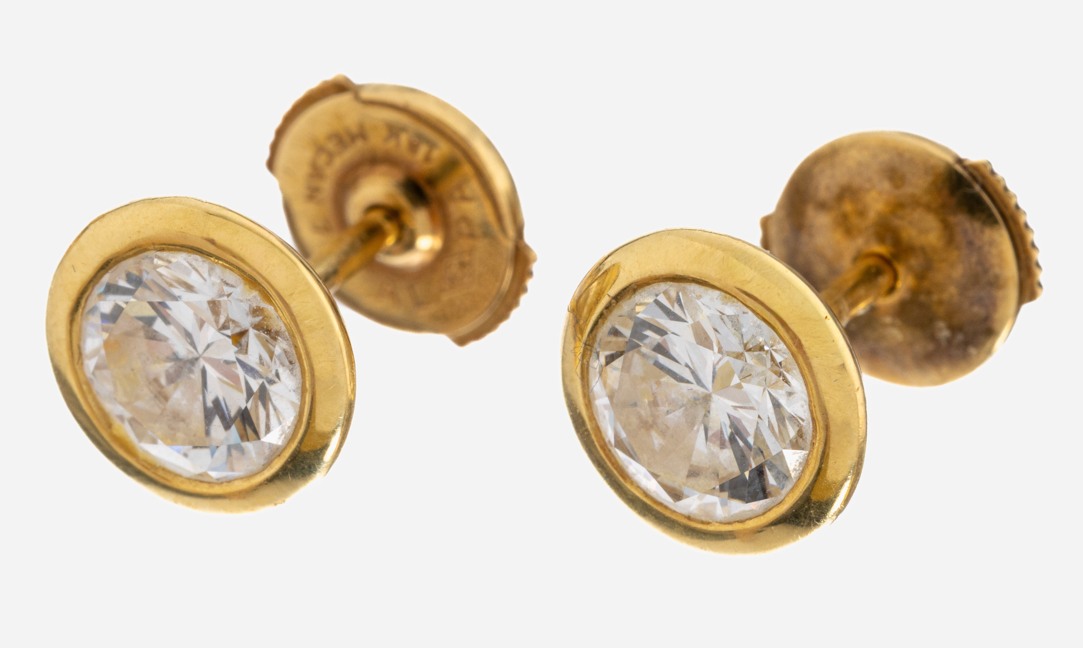Paar 18 kt Gold Brillant-Ohrstecker, GG 750/000, 2 Brillanten zus. ca. 2.10 ct Weiß/