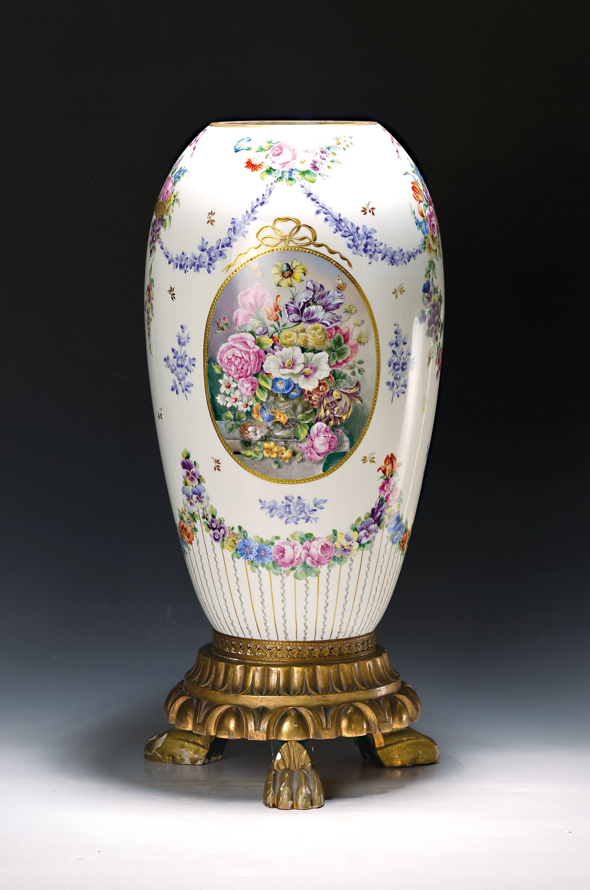 Sehr große Vase, KPM Berlin, um 1910, Porzellan Hausmalerei, in Kartusche feines