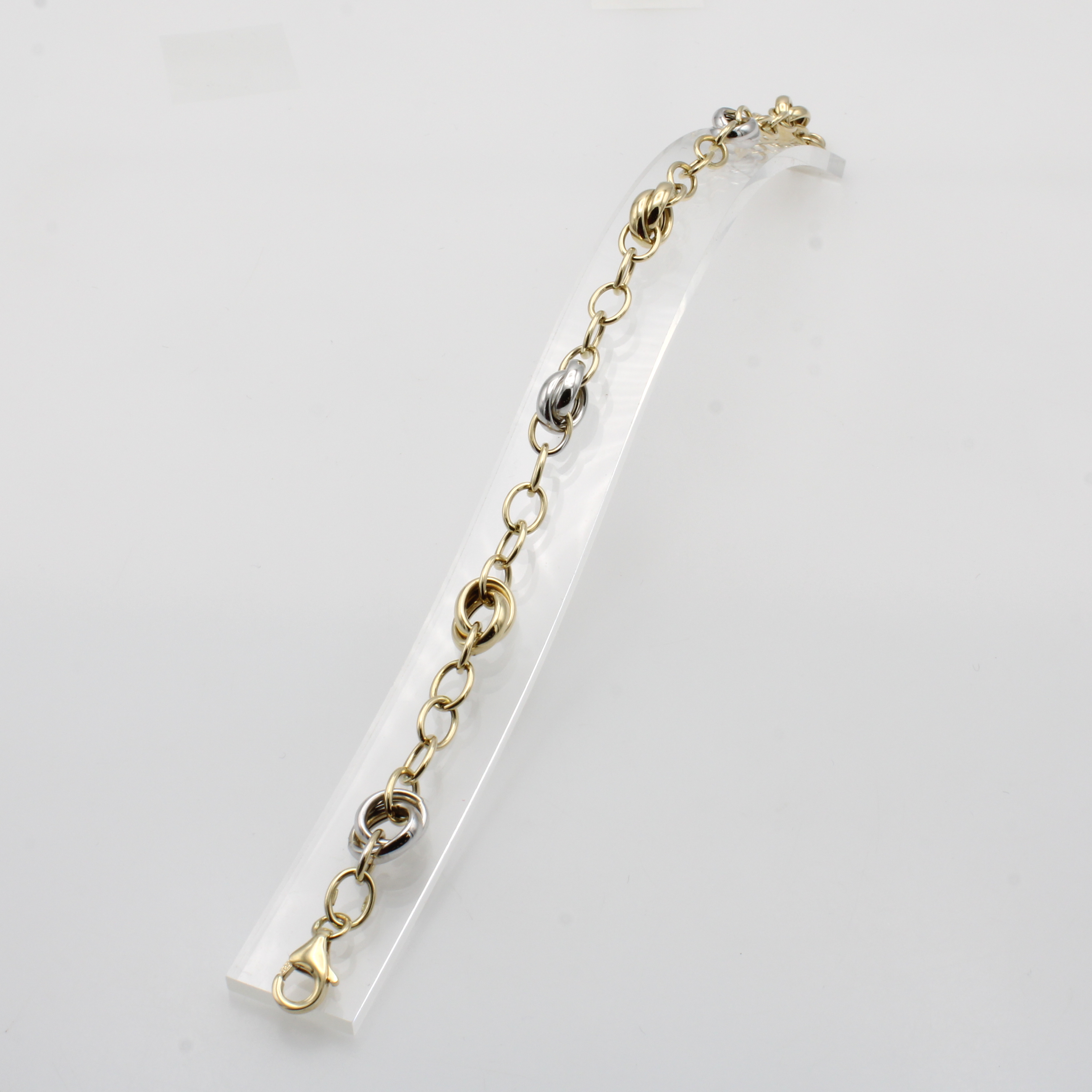 Armband, GG/WG 585/000, Zwischenteile ver- schlungen, Karabinerschl., L. 19-21 cm