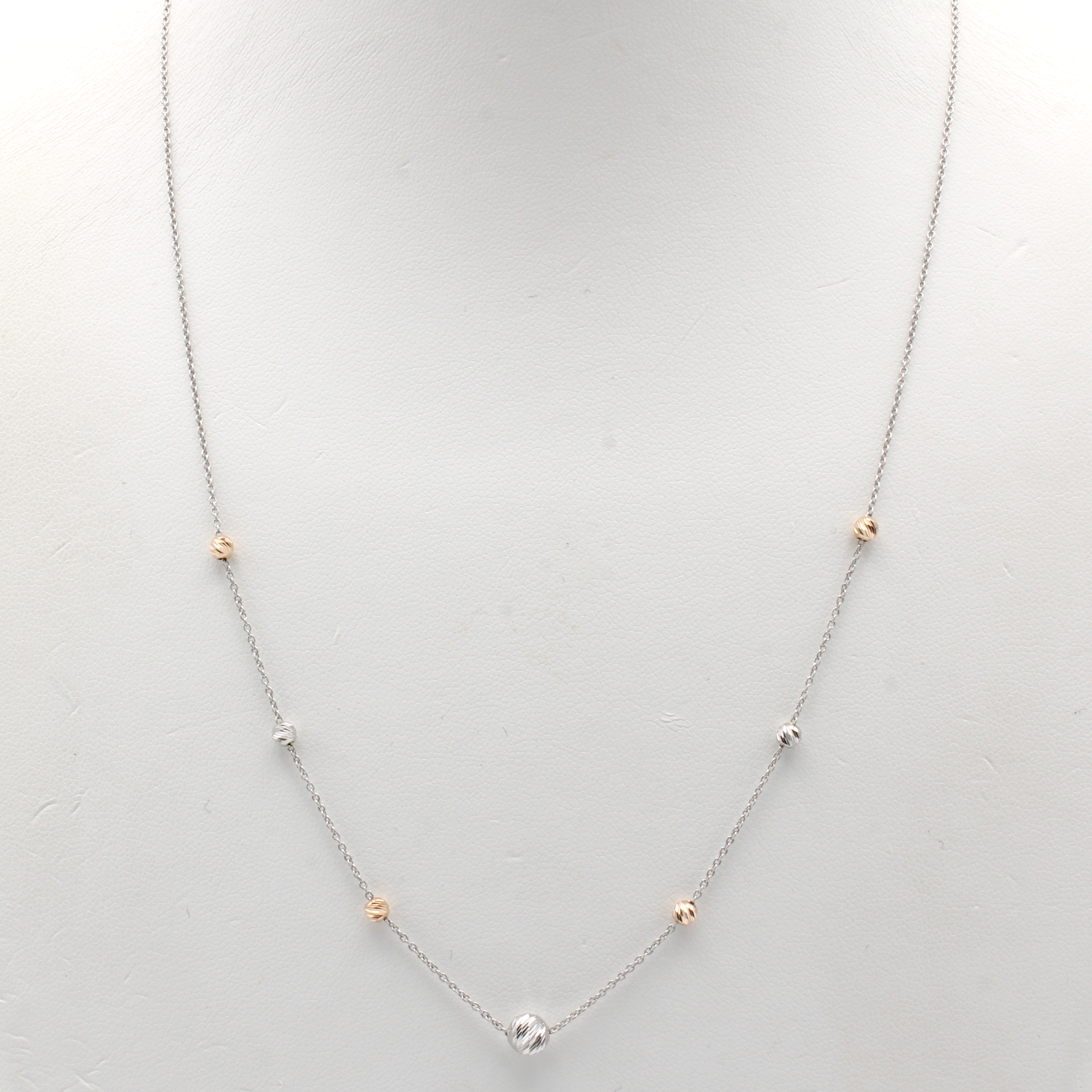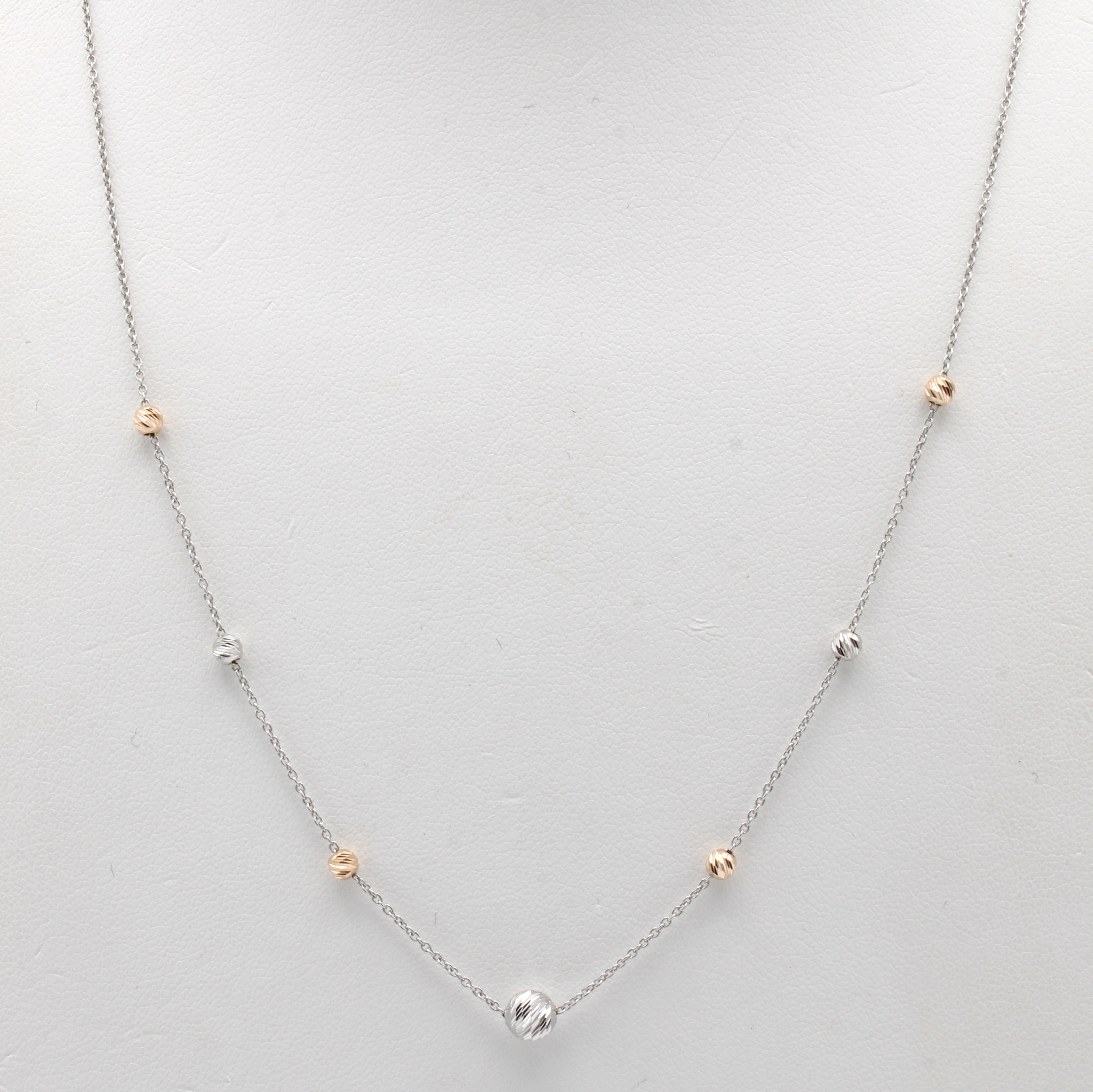 Collier, WG/RG 585/000, diamantierte Kugeln in versch. Größen, Federringschl., L. ca. 42- 45 cm