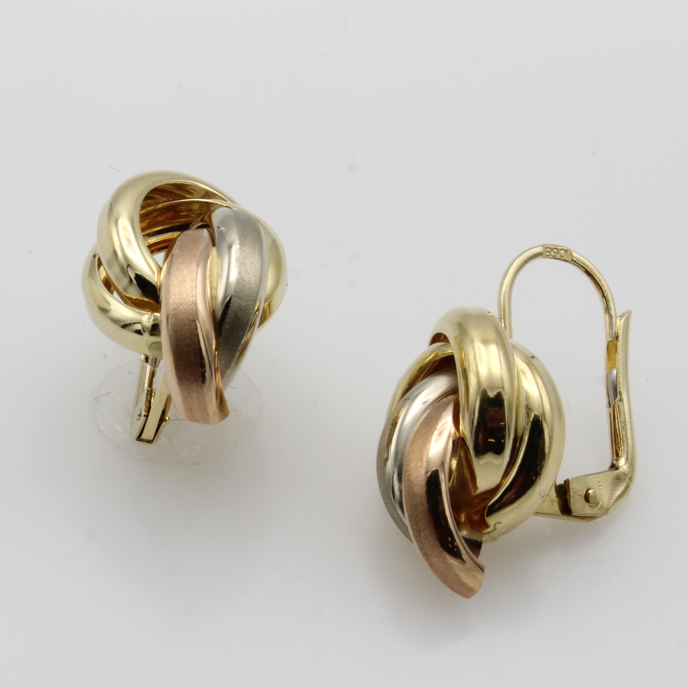 Paar Ohrgehänge in Knotenform, GG/WG/RG 585/000, z.T. mattiert